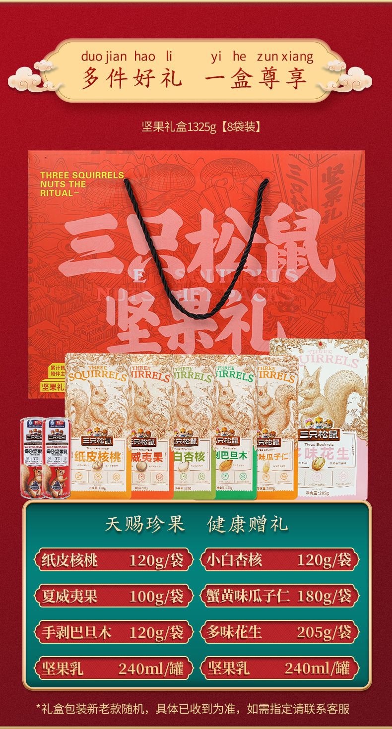 リスナッツ三匹セット1325g/8袋ミックススナック大プレゼントナッツ炒め物セット祝日共同購入