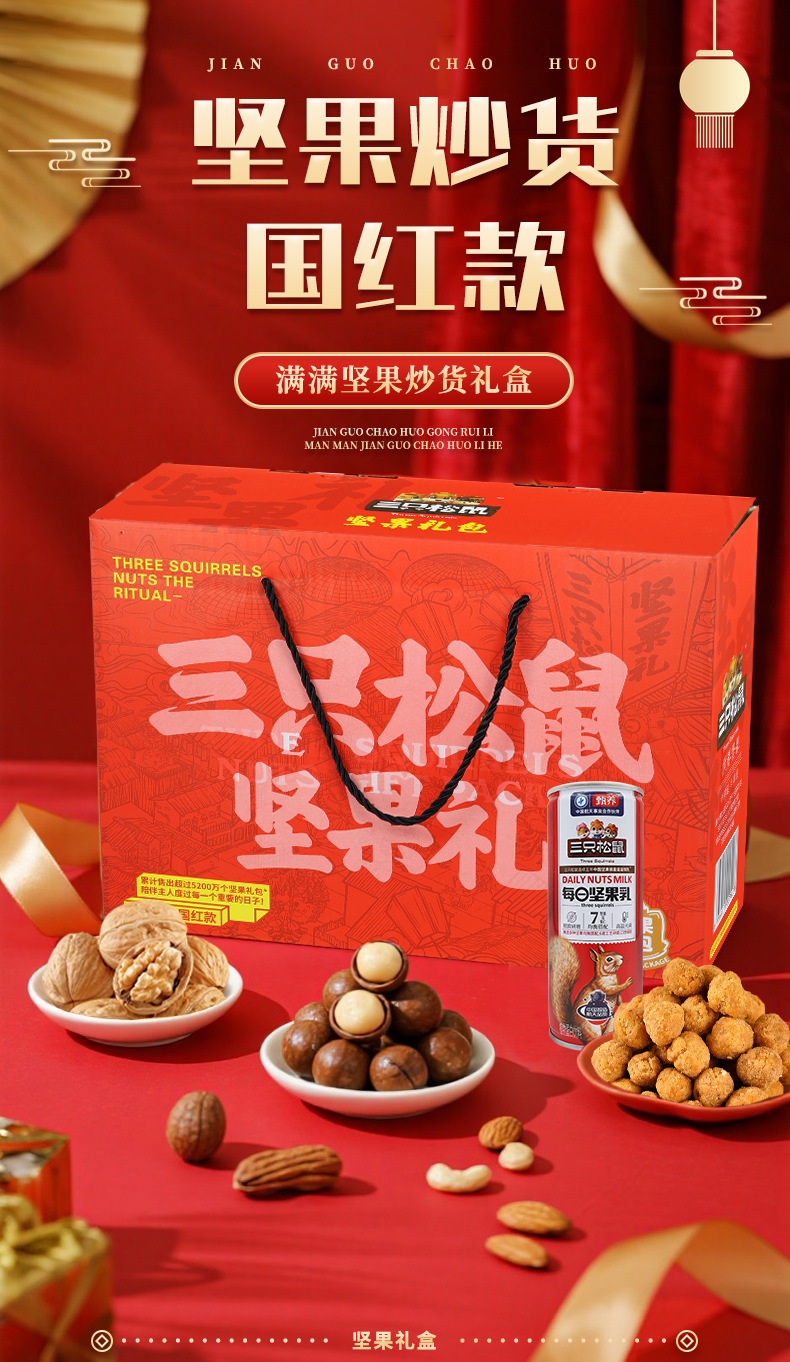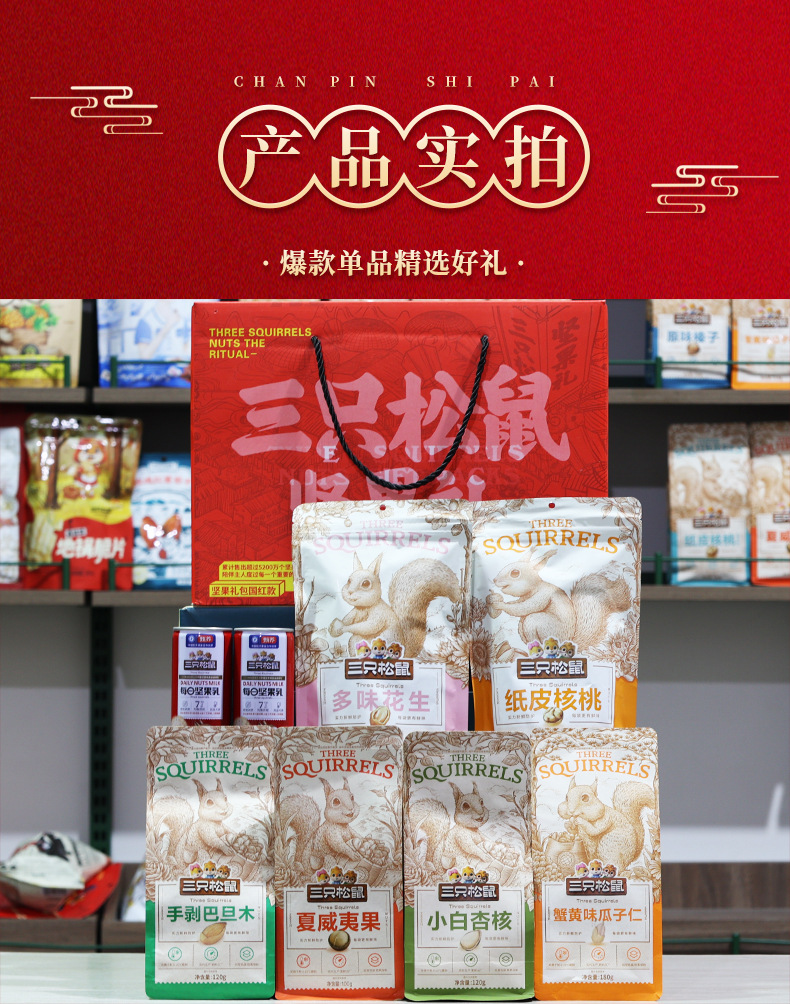 ドロップシッピング 3 つのリス デイリー ナッツ 750g 30 袋 高級スタイル 4 種類のナッツ 4 種類のドライ フルーツ ギフト ボックス