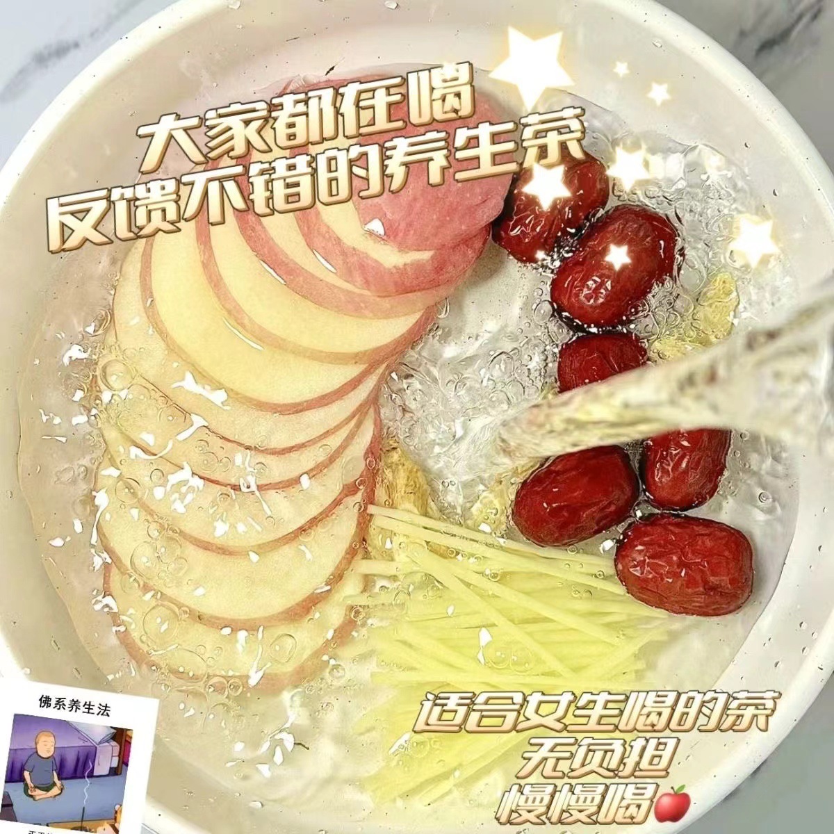 【顶配版】苹果黄芪水无花果麦冬红枣枸杞茶苹果山楂茶素颜水代发