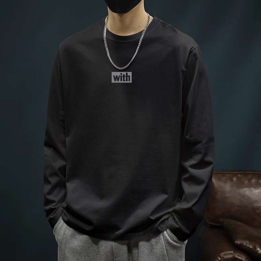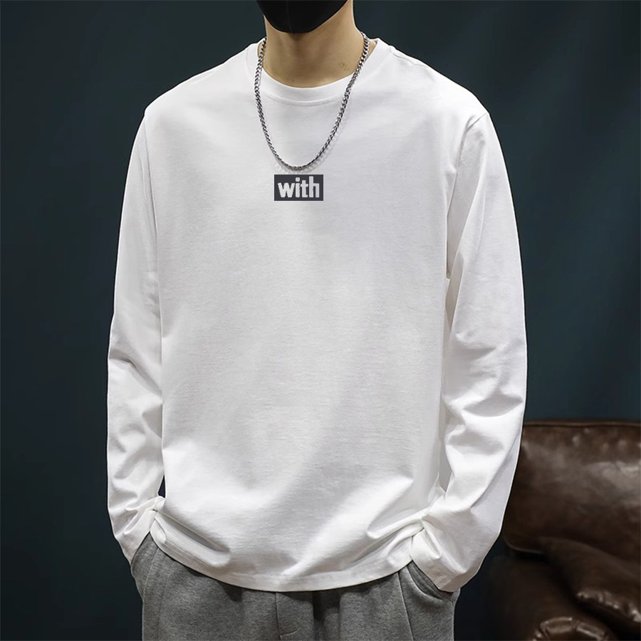 Tシャツ カジュアルで多用途なピュアコットン メンズ ゆったり トレンド ブランド 長袖 インナー 秋 大きいサイズ プリント インス 春秋 ヘビーウェイト