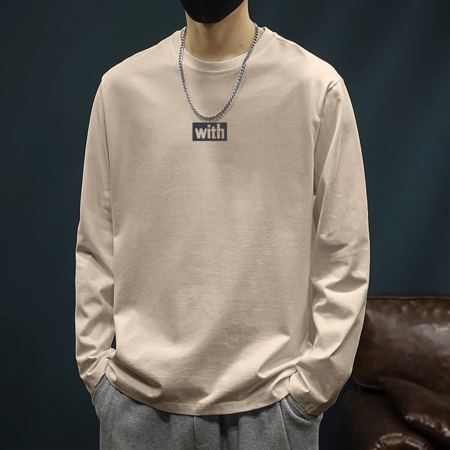 重ポンド200グラム純綿tシャツ男性春のファッションブランドのレトロな純色長袖のボトムシャツ