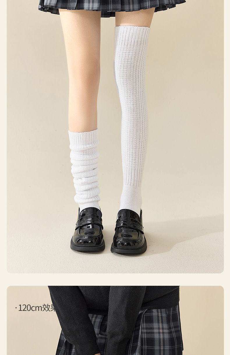 白い靴下の子供の象の足のストッキングの長い筒の美脚の女子学生は膝の大きい足の靴下の日本のかわいい太線の山を越えます。