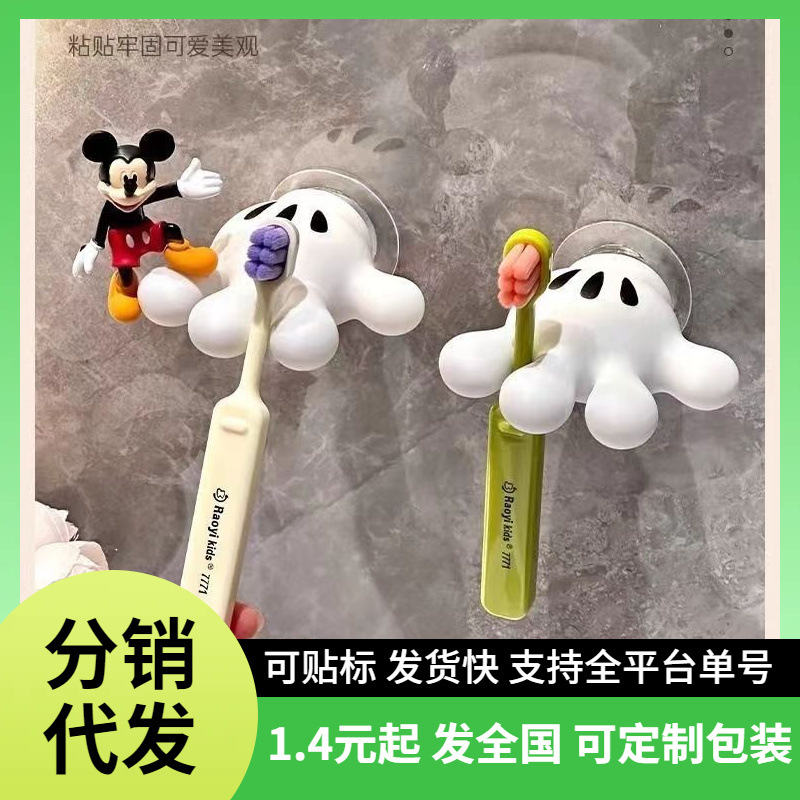 卸売かわいい電動歯ブラシ収納ラックミッキーパーム粘着フック浴室パンチフリー壁掛け子供用歯ブラシ