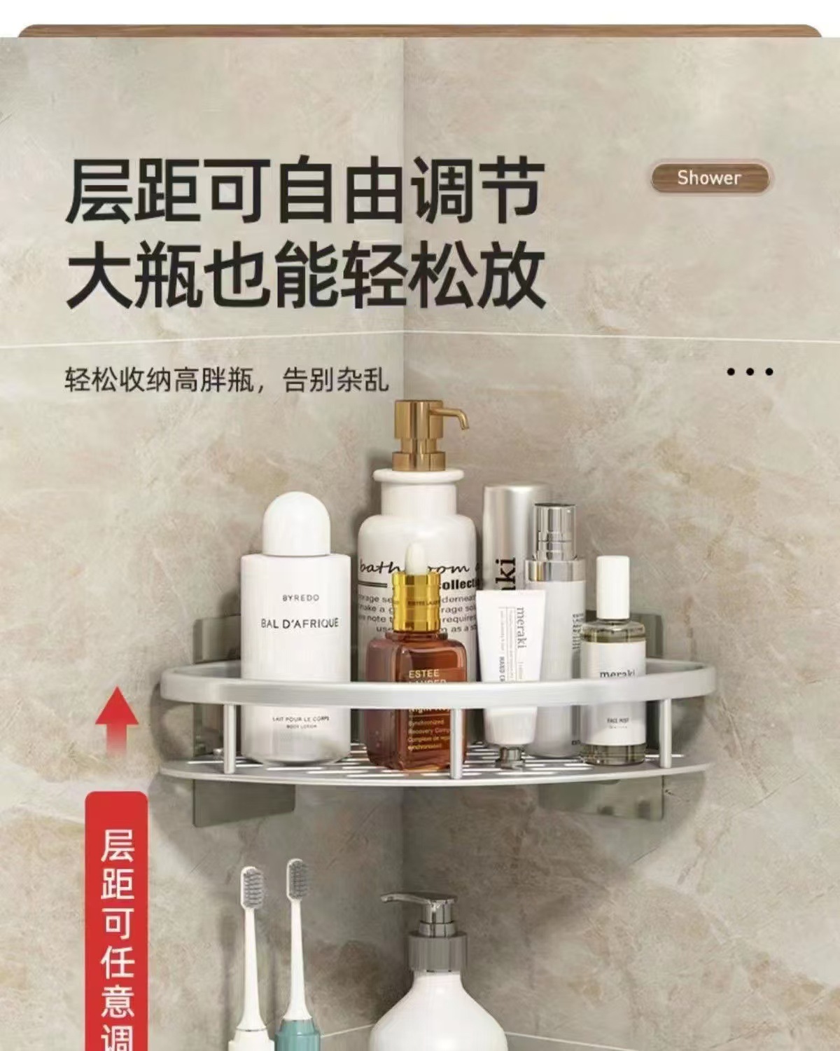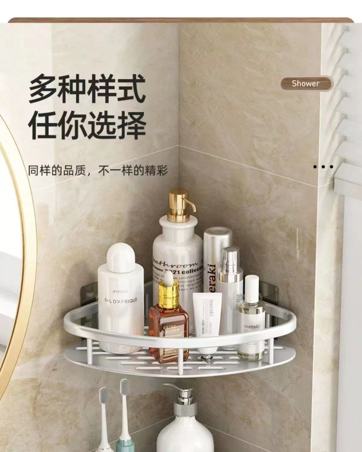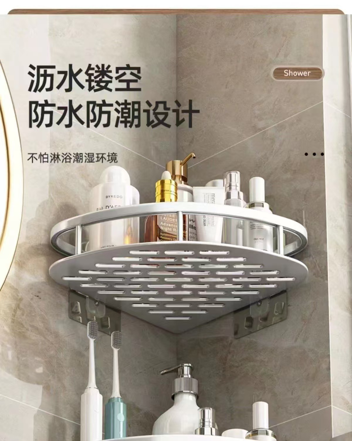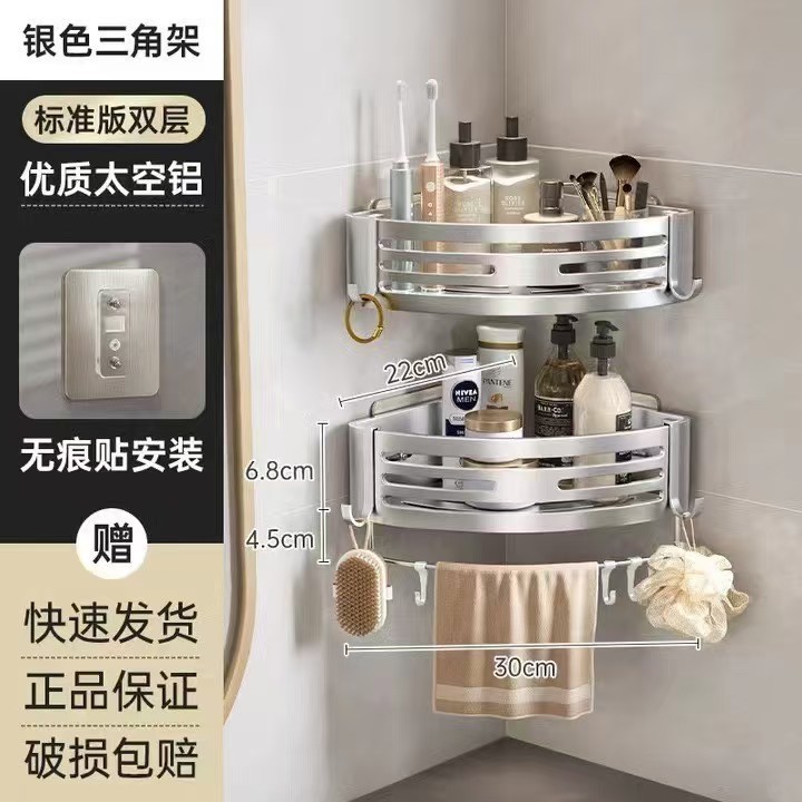 免打孔浴室收纳置物架卫生间壁挂式多层三角厕所转角挂墙防水吸盘