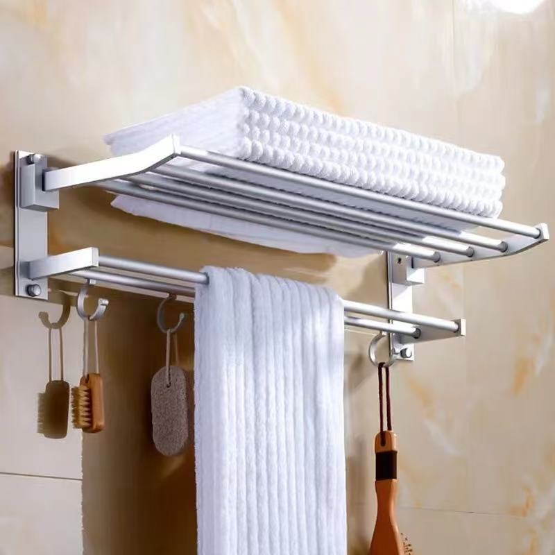 クロスボーダー宇宙アルミ二重折り畳み活動タオル掛けトイレタオル掛け浴室多機能棚フック