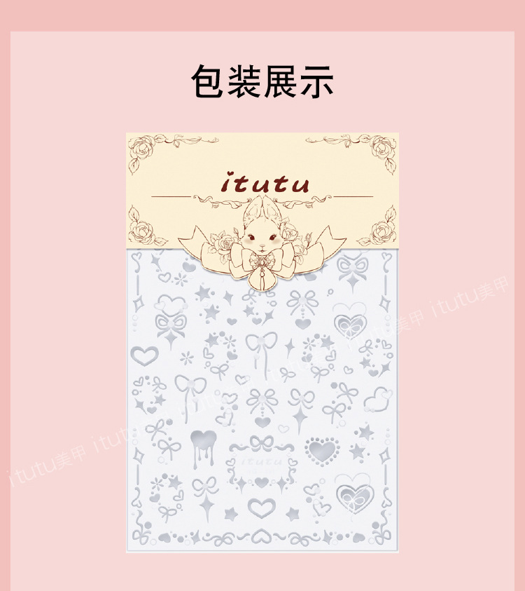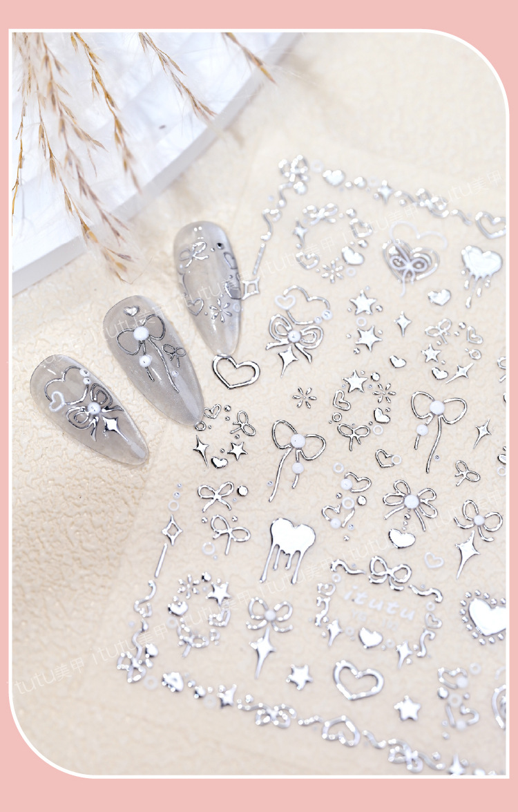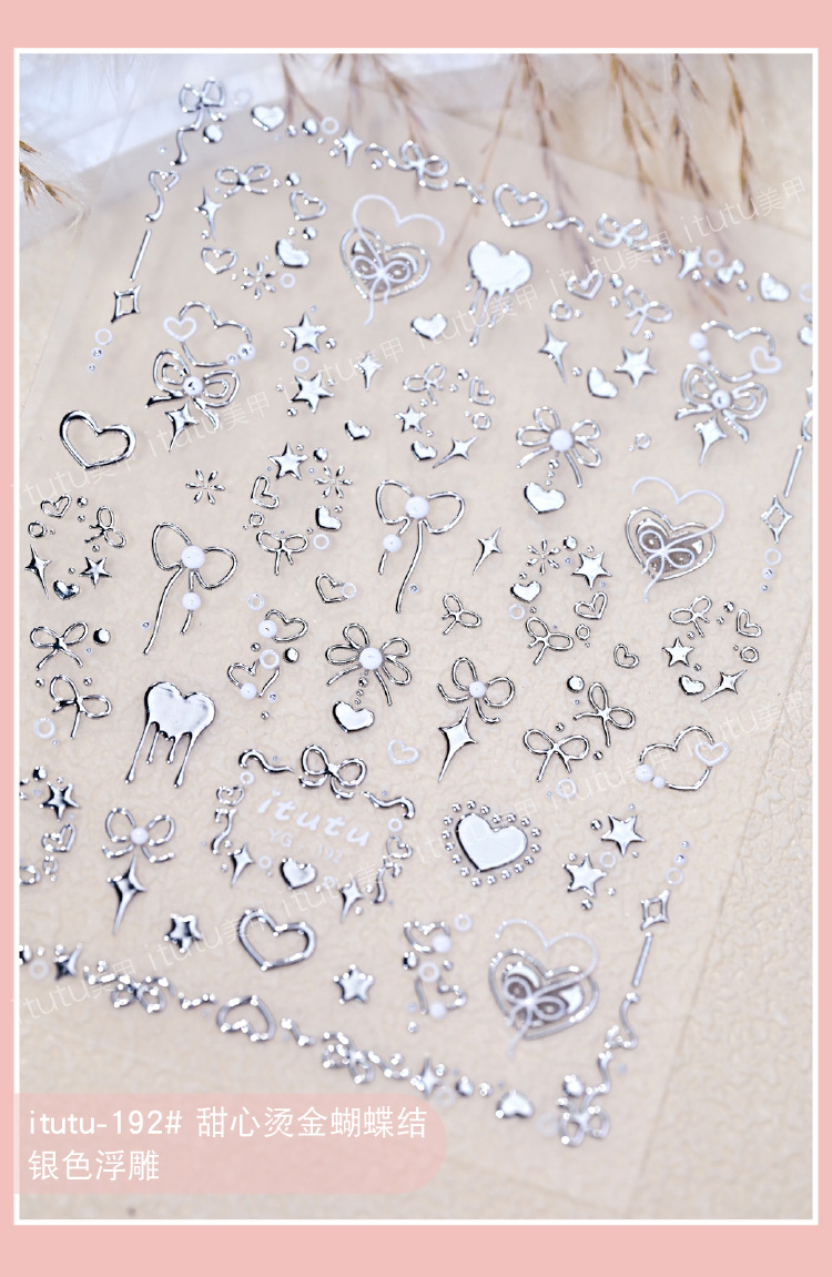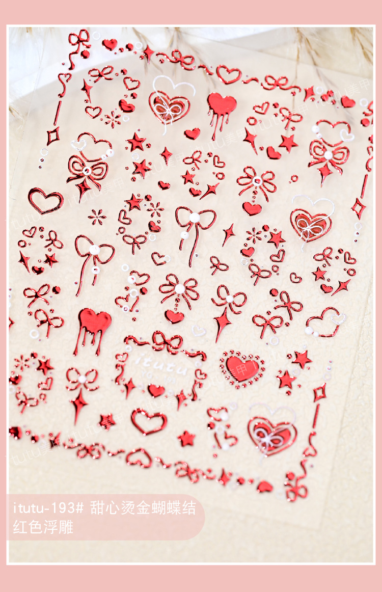Itutu新作ハニーヘアアイロン蝶結び浮き彫りネイルシールバラ結びハート蝶結びパーマ191