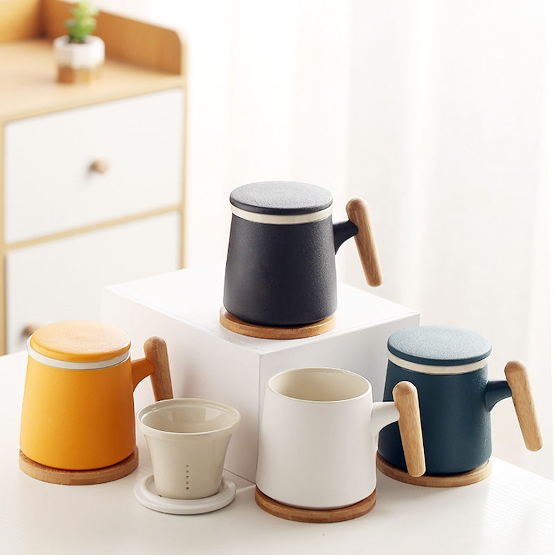 お茶分離カップ陶磁器カップ蓋付きろ過木柄マグカップセットプレゼントは小ロット印刷が望ましい