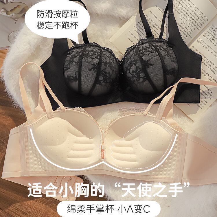 フランス風純粋な魅力のランジェリー、小胸女性向け、美背見せ、レースでバストアップ効果、ソフトワイヤー入り、調整可能な副乳補正、シームレスブラ。