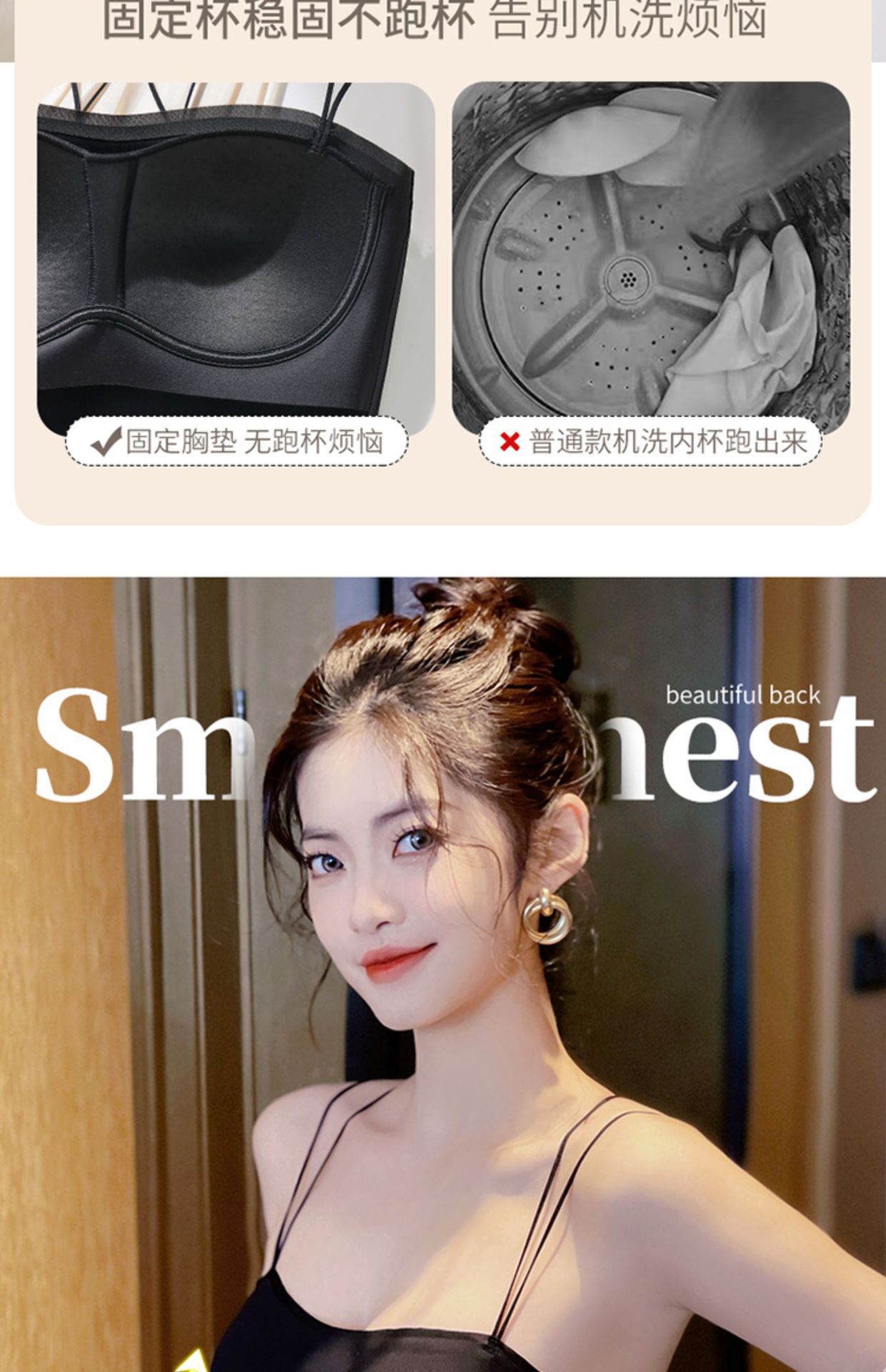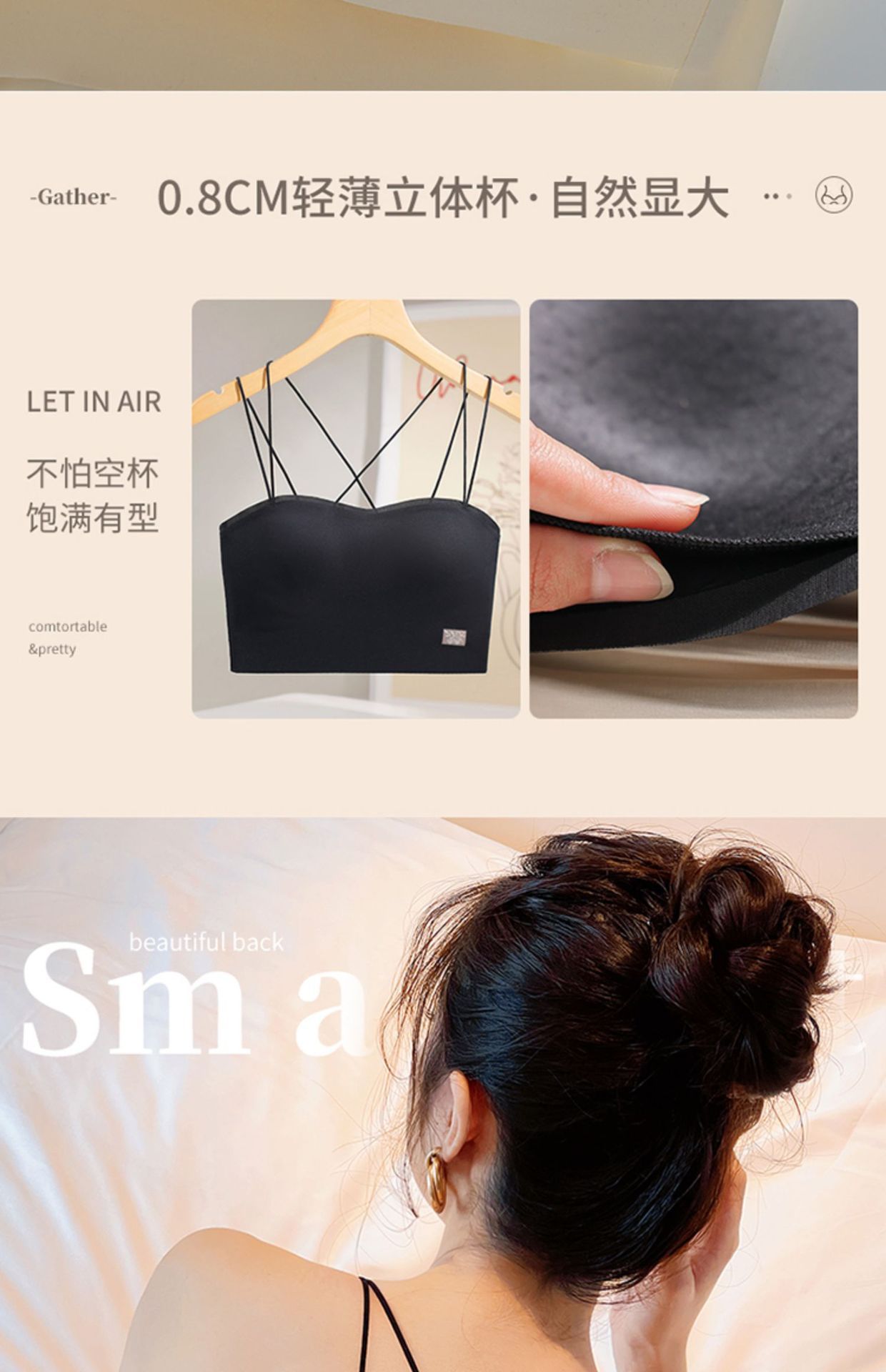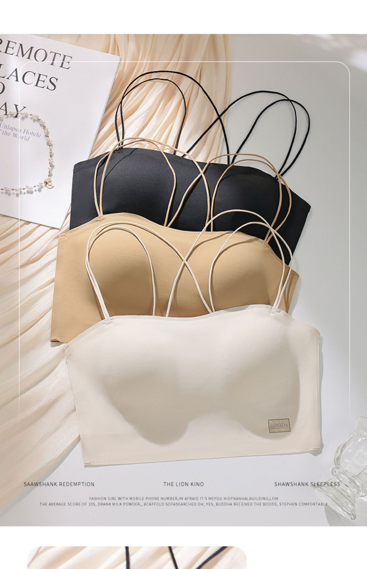 シンプルな胸元留め紐付きブラ、美背、ノースリーブ、滑り止め、プッシュアップ、小胸用、ノンワイヤー、薄型、シームレスブラ