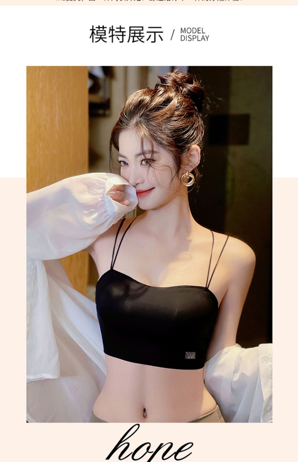 夏用薄手ブラトップ、大きい胸を小さく見せる、寄せ上げ効果のあるキャミソール、露出防止、細い肩紐ブラ