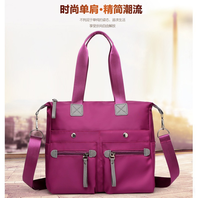 レディース大容量トートバッグ新品ワンショルダー手持ち外出ナイロンクロスショルダーバッグ日系透明ポケット現物