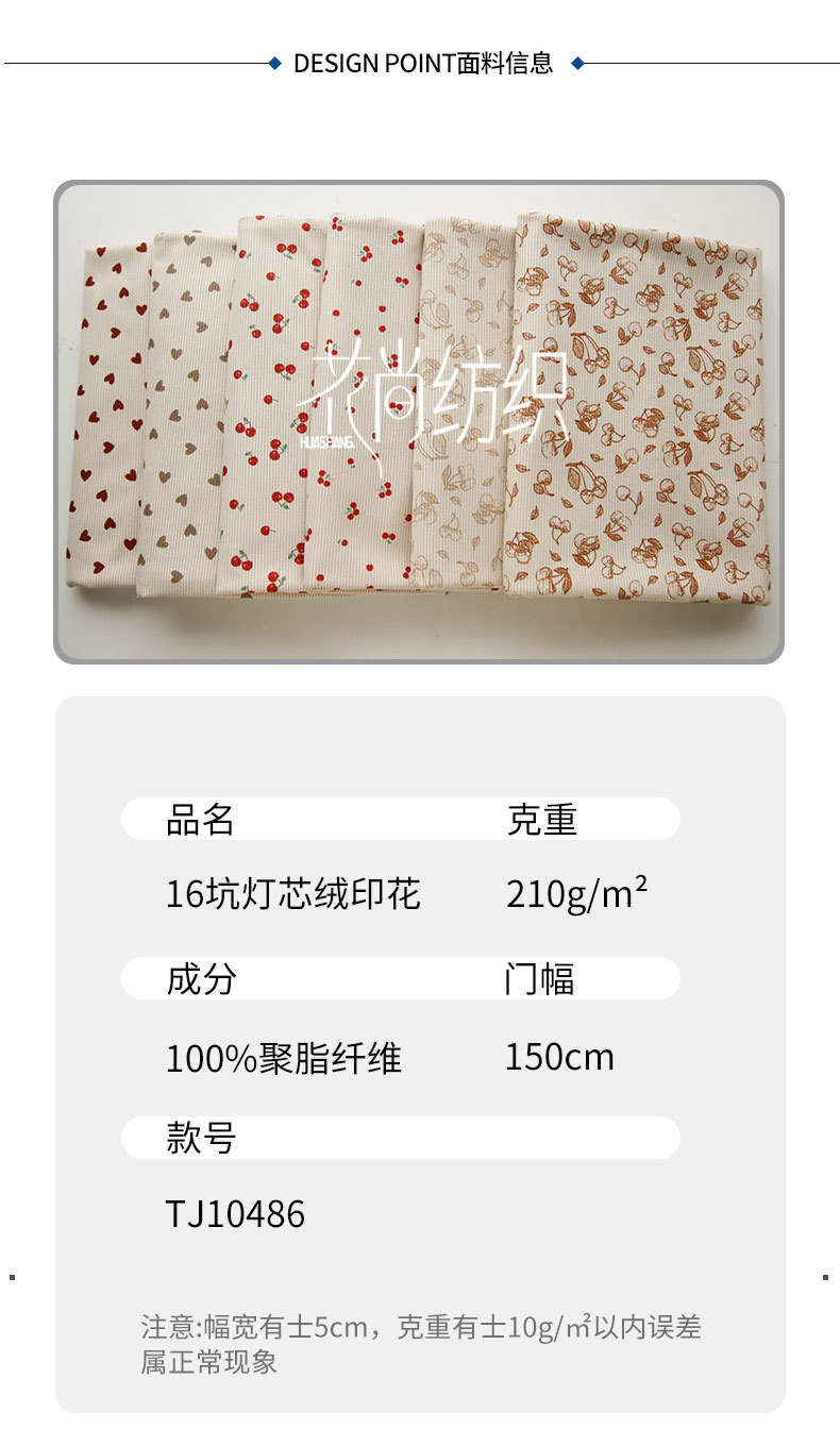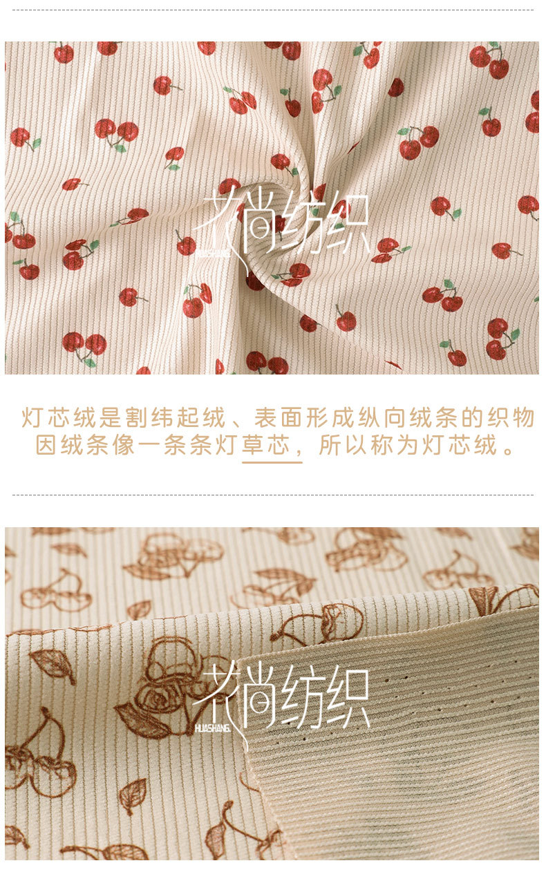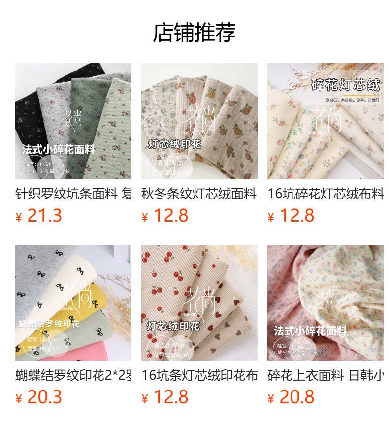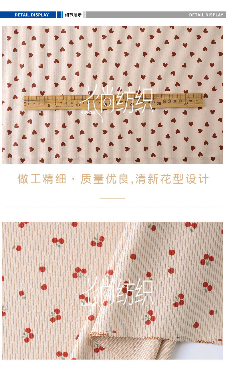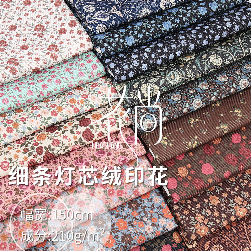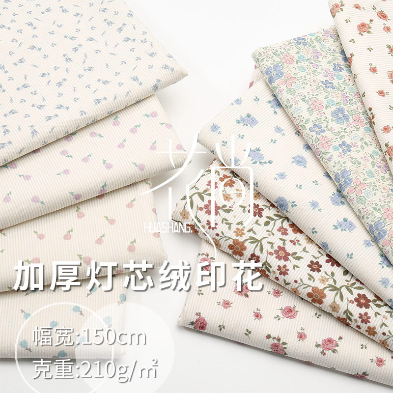碎花灯芯绒布料210g细条绒布16坑条外套布 服装抱枕睡衣印花面料