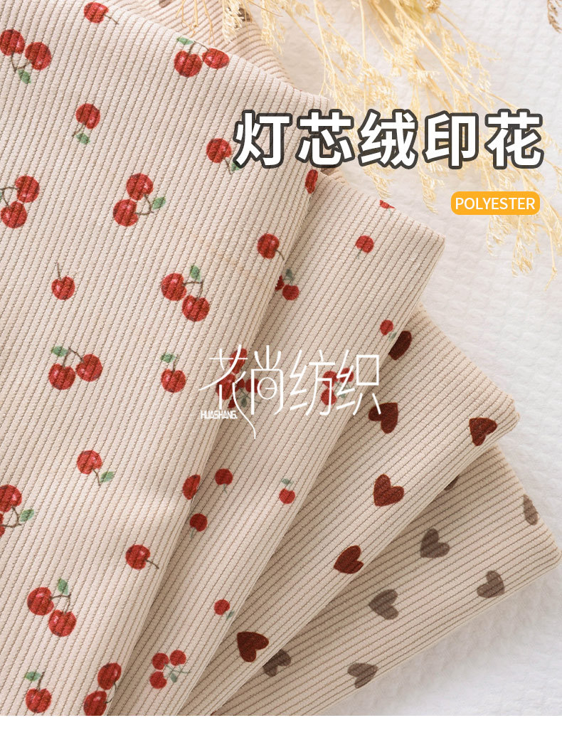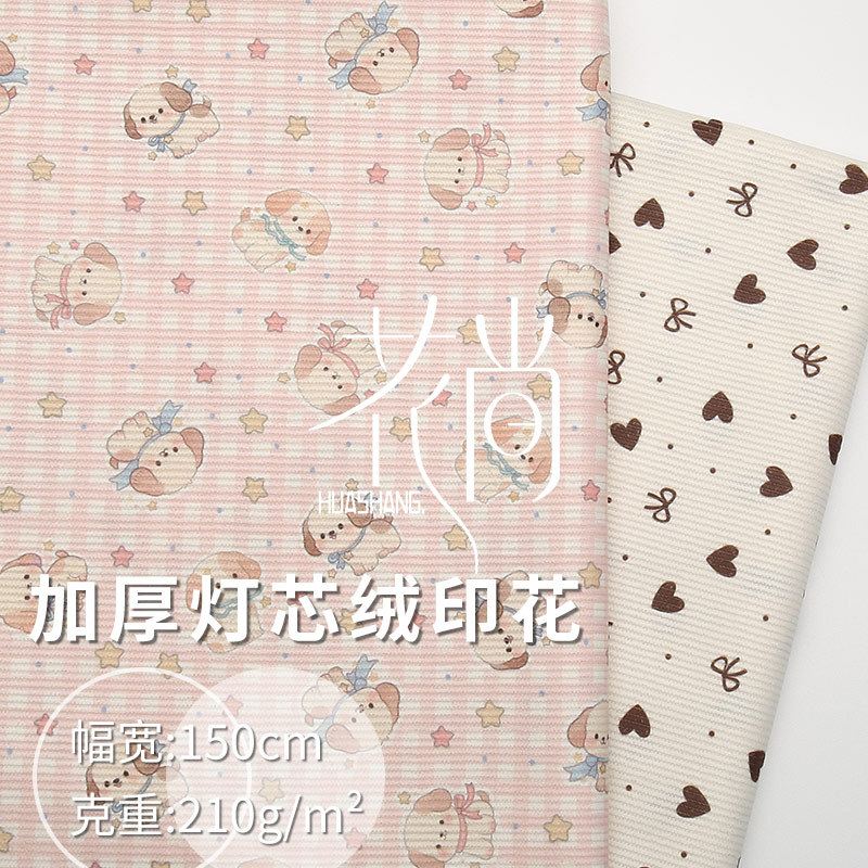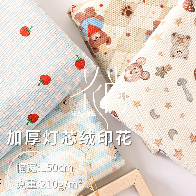 印花灯芯绒布料 210g加厚卡通童装印花布秋冬抱枕连衣裙坑条面料