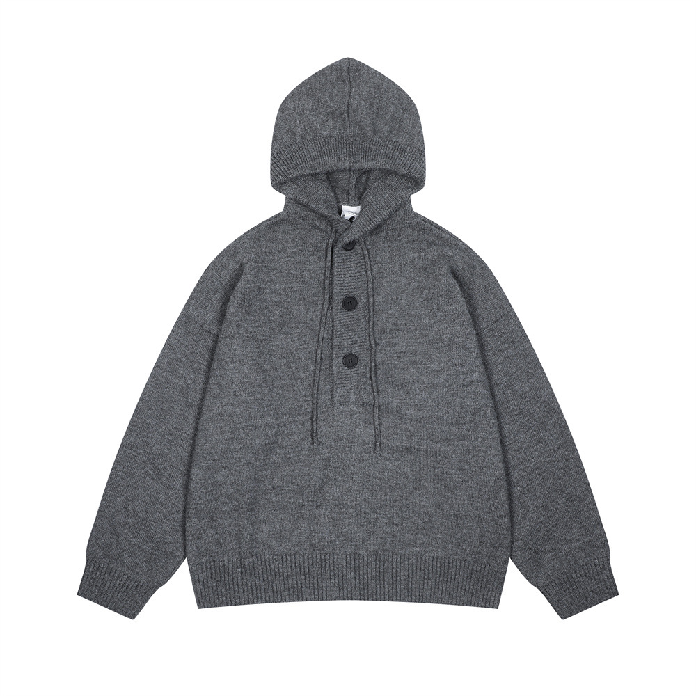 半カーディガンのボタンと帽子のセーター秋冬男性のファッションブランドのアメリカ式の怠惰な風の純色のセットのニットのシャツ