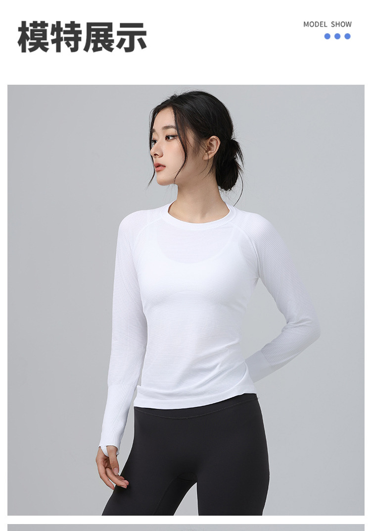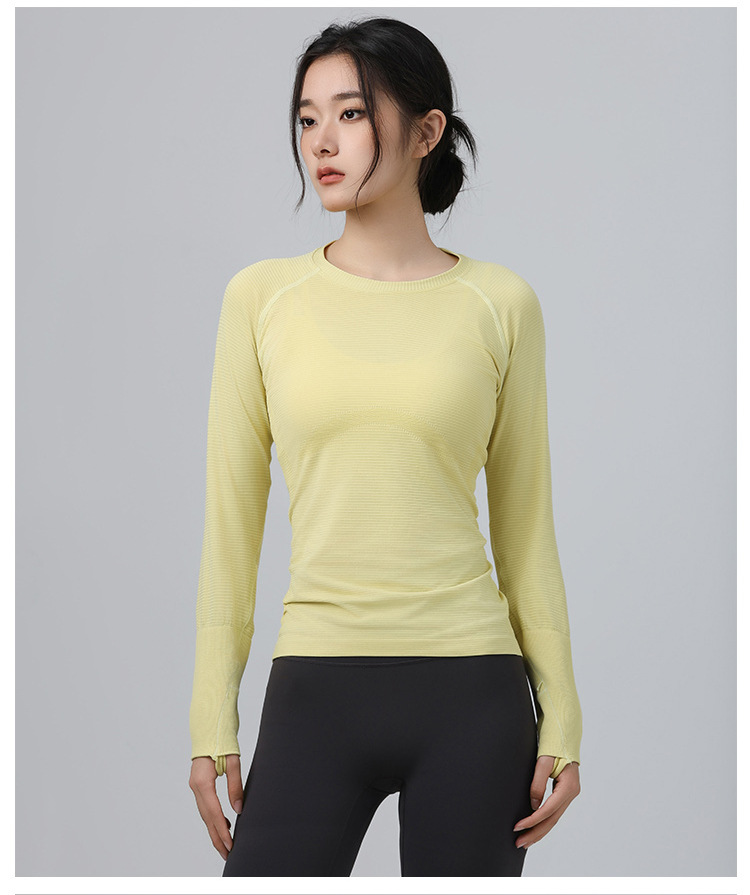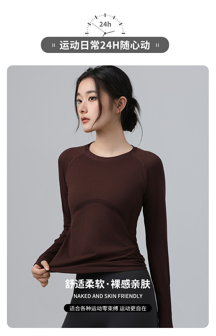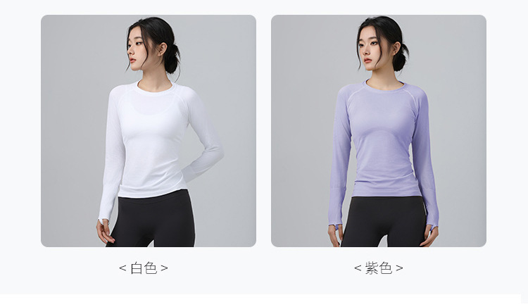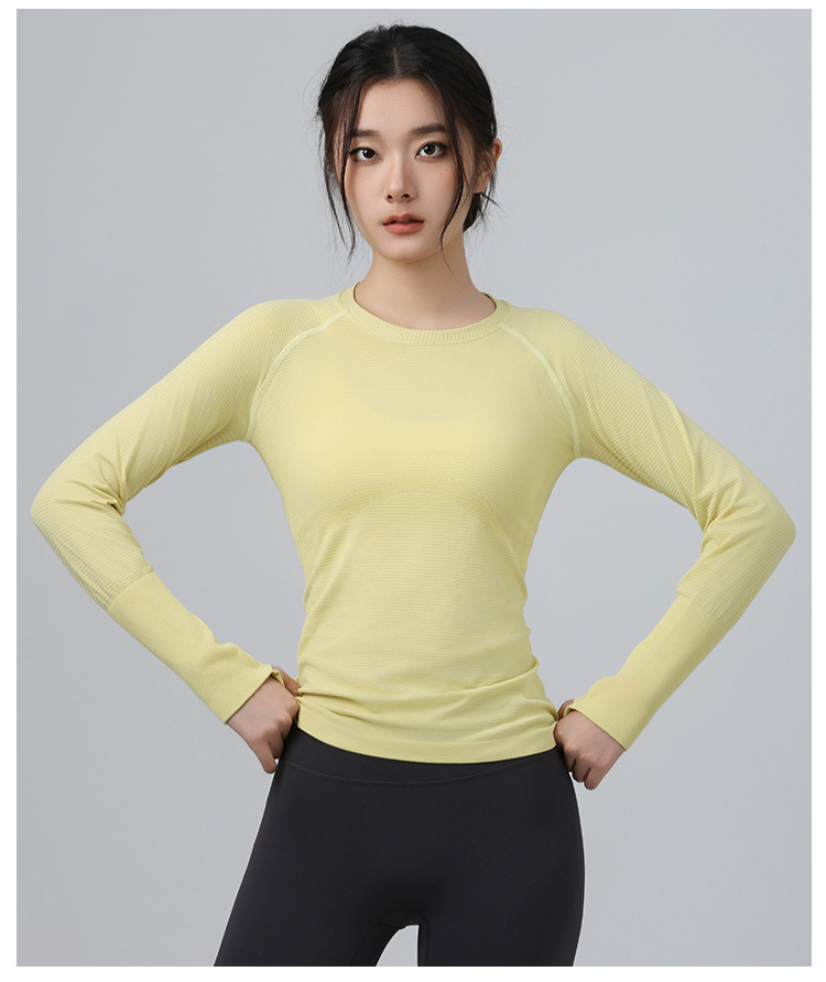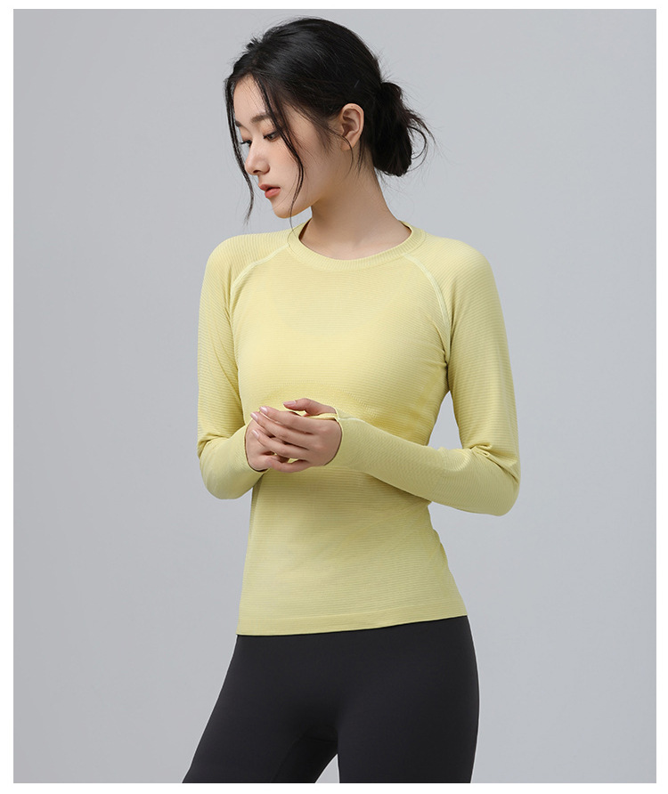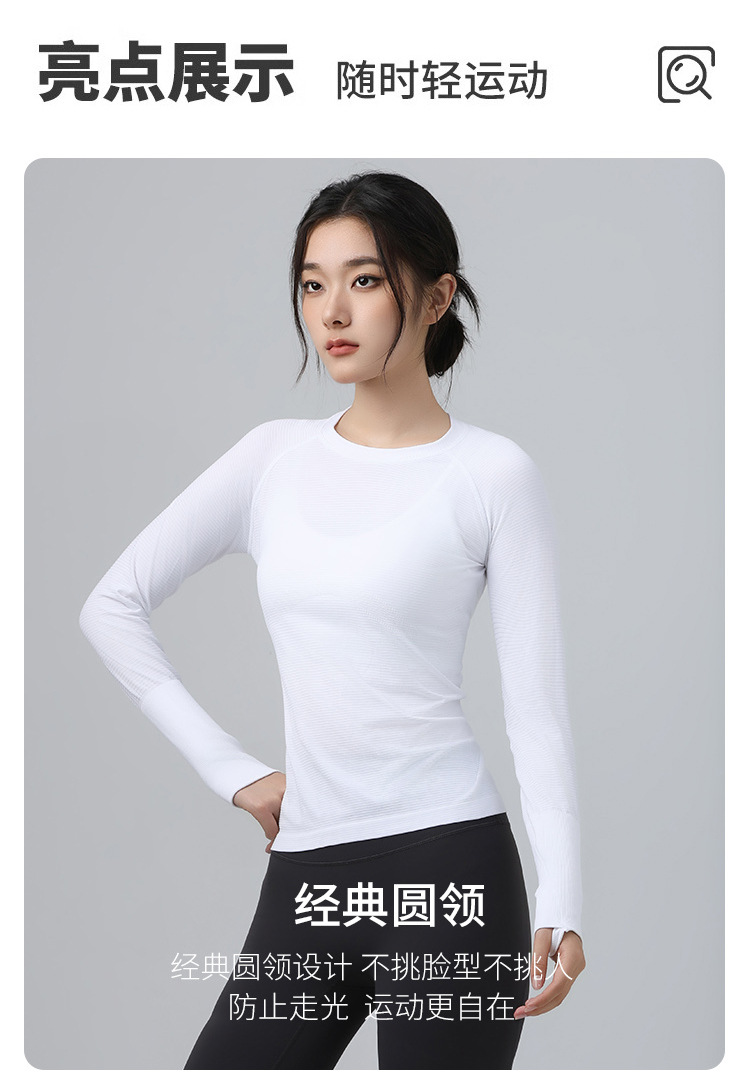 秋冬修身显瘦跑步透气瑜伽服修身长袖女运动上衣圆领普拉提跑步