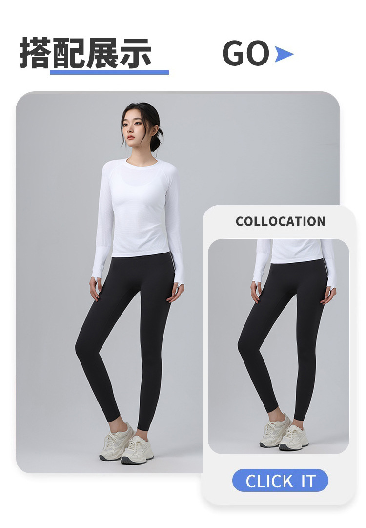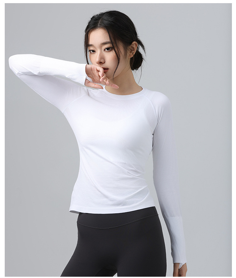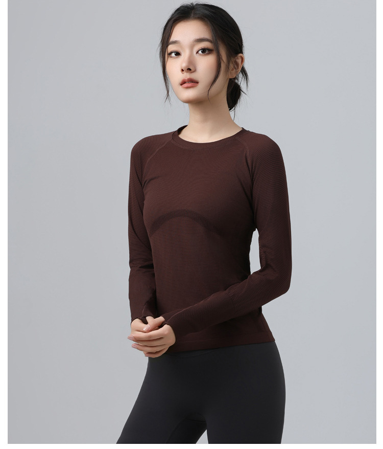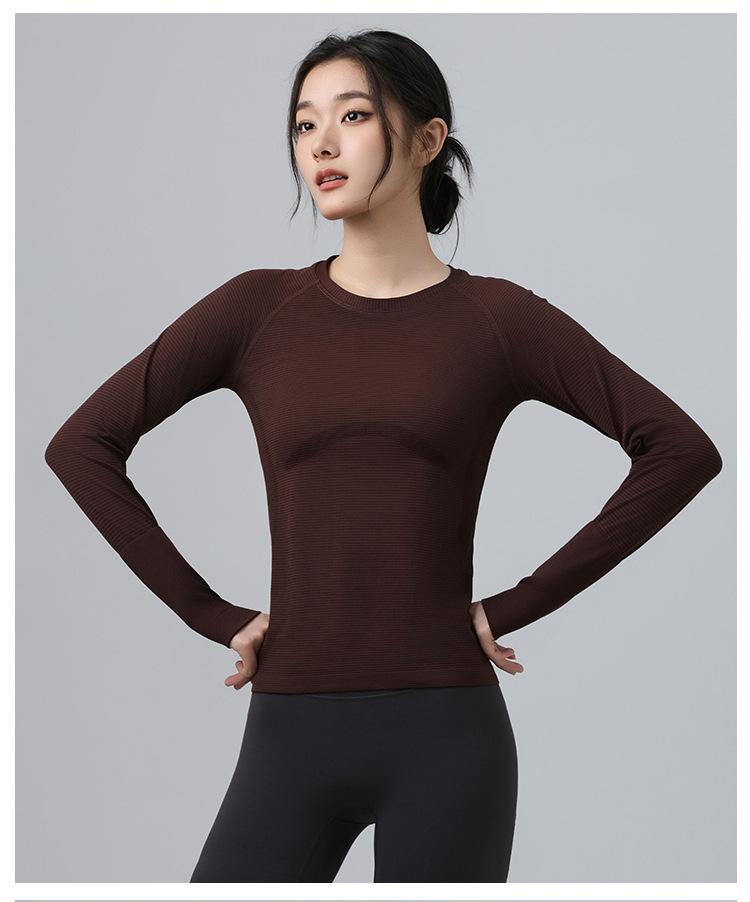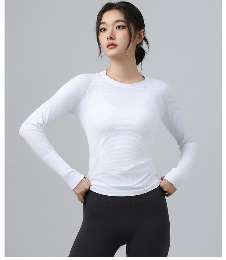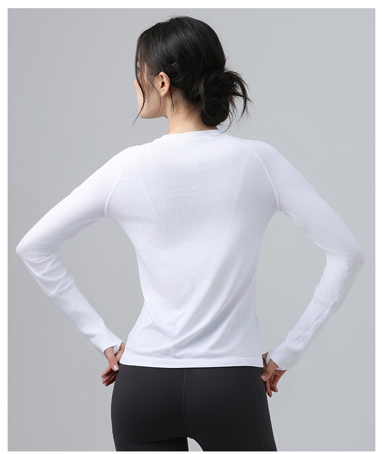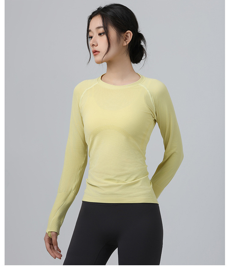 秋冬修身显瘦跑步透气瑜伽服修身长袖女运动上衣圆领普拉提跑步