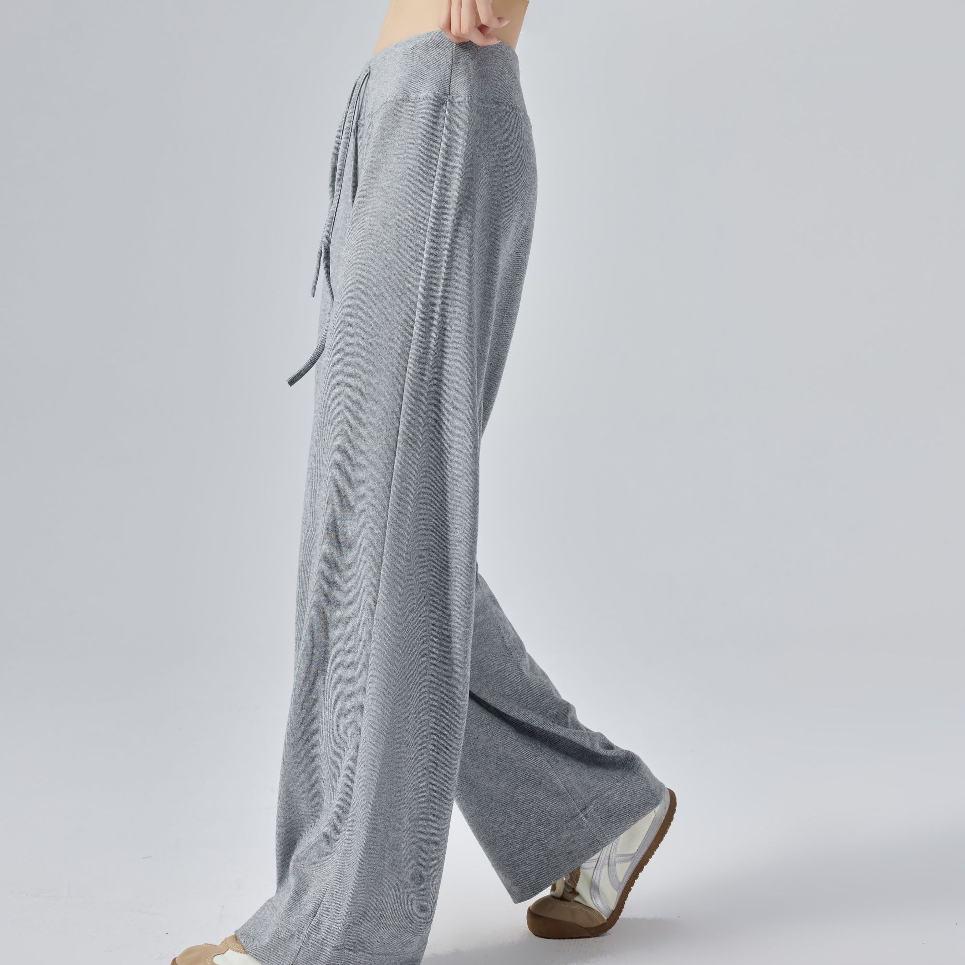 秋季新款慵懒松弛感灰色宽松软糯抖抖裤女夏针织舒适阔腿休闲裤