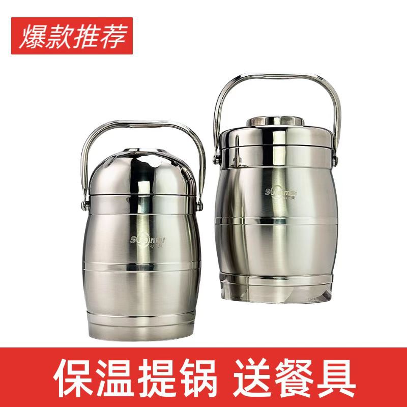保温饭桶不锈钢真空三层超长保温提锅提桶保温桶学生提锅饭盒包邮