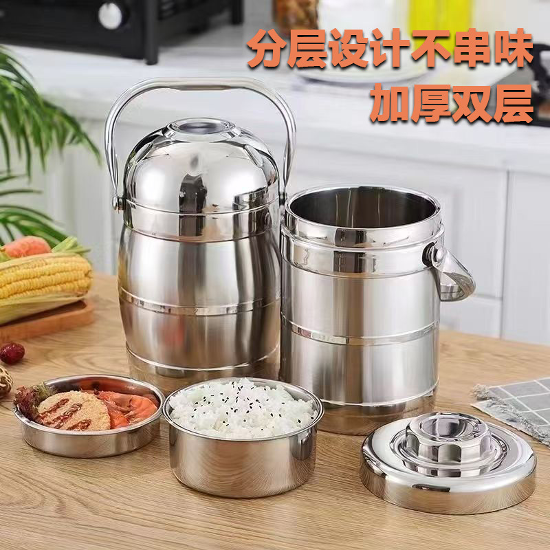 ステンレス保温桶長長保温弁当箱2/3/多層大容量成人学生弁当箱弁当桶提鍋