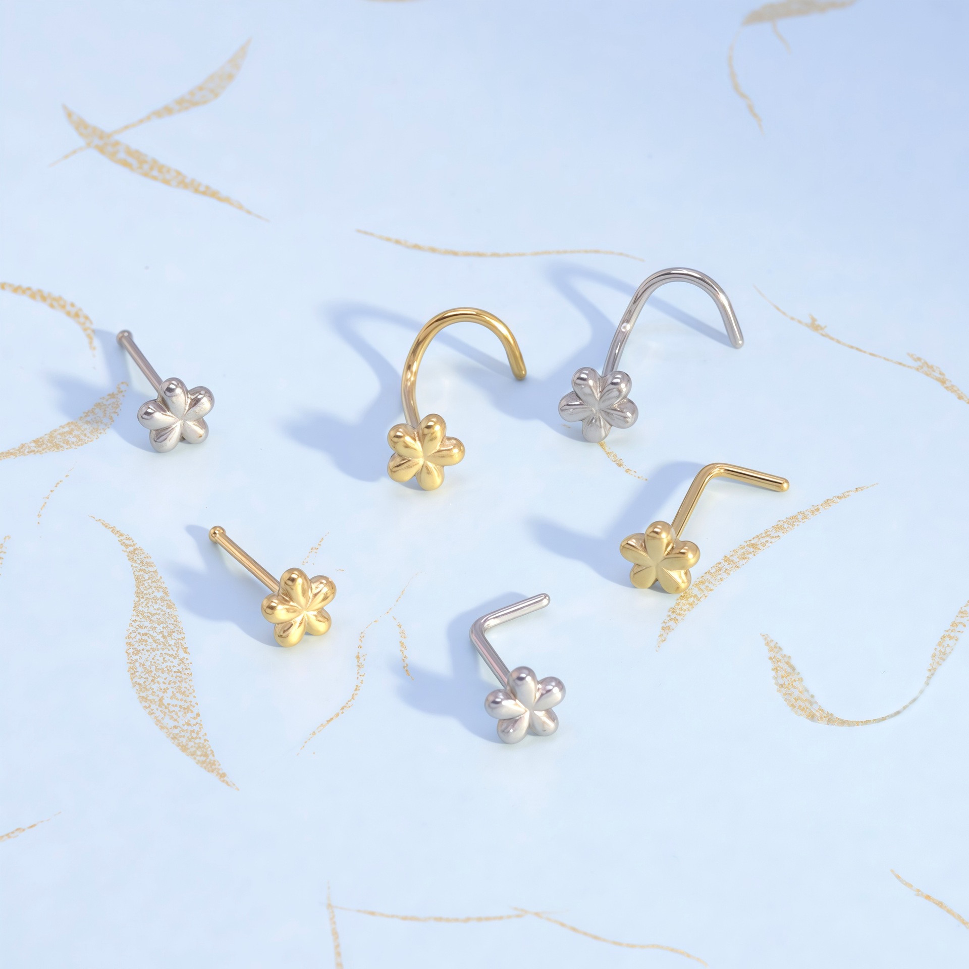 新品来袭跨境热销不锈钢鼻钉小清新直杆L杆5字杆花朵鼻钉简约时尚