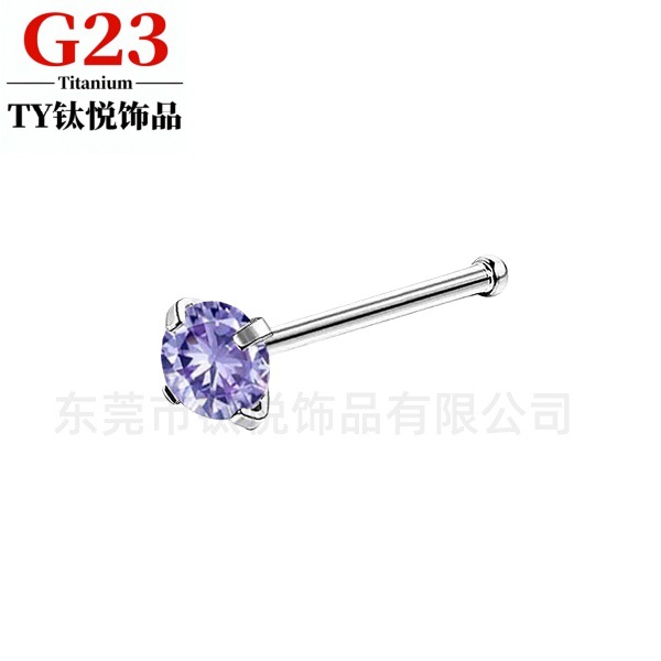 时尚穿刺饰品批发欧美流行款F136钛合金锆石鼻钉闪亮直杆鼻环代发