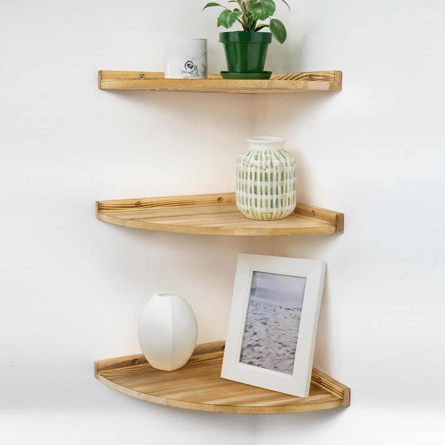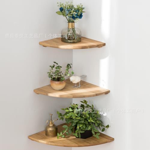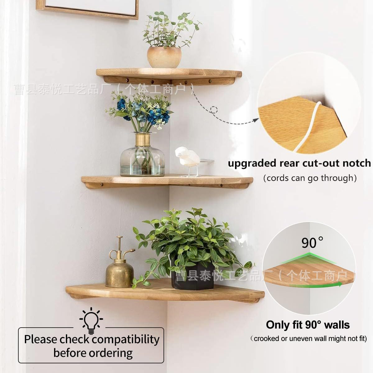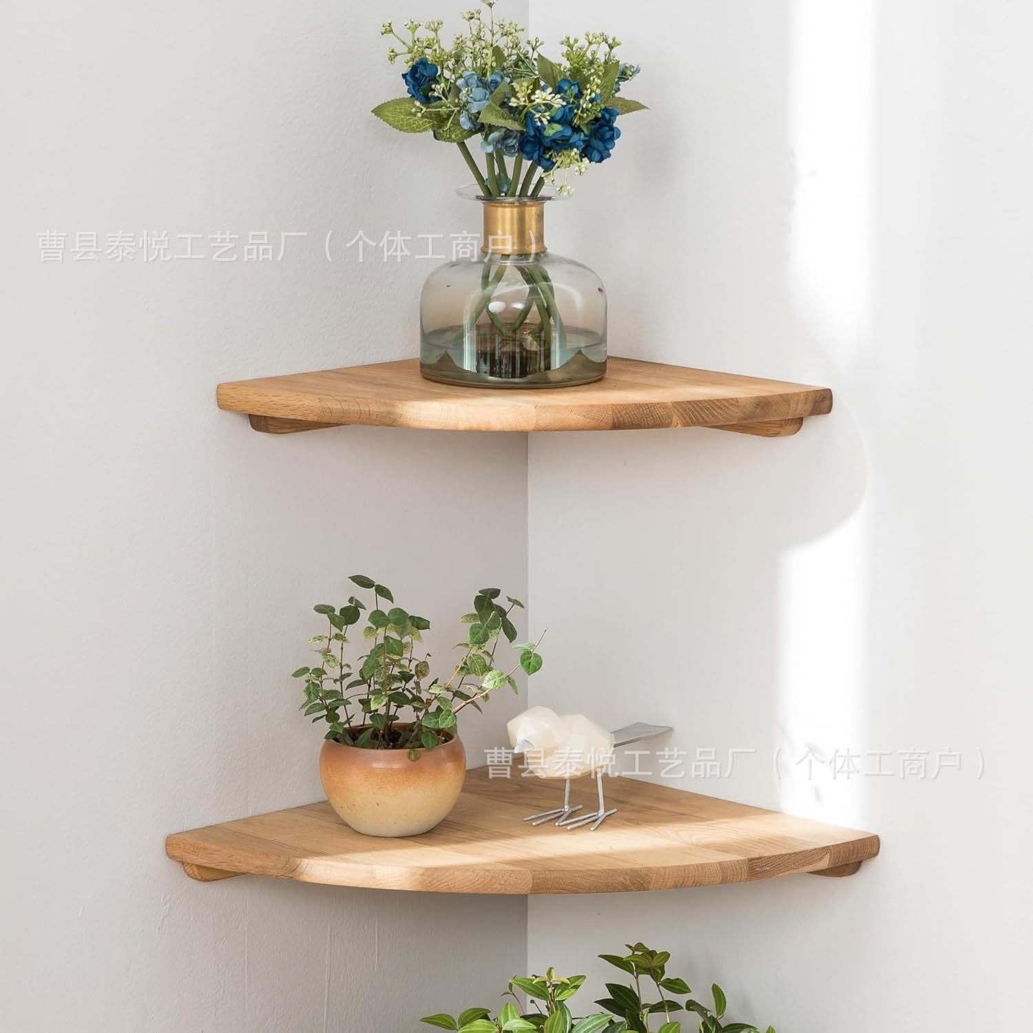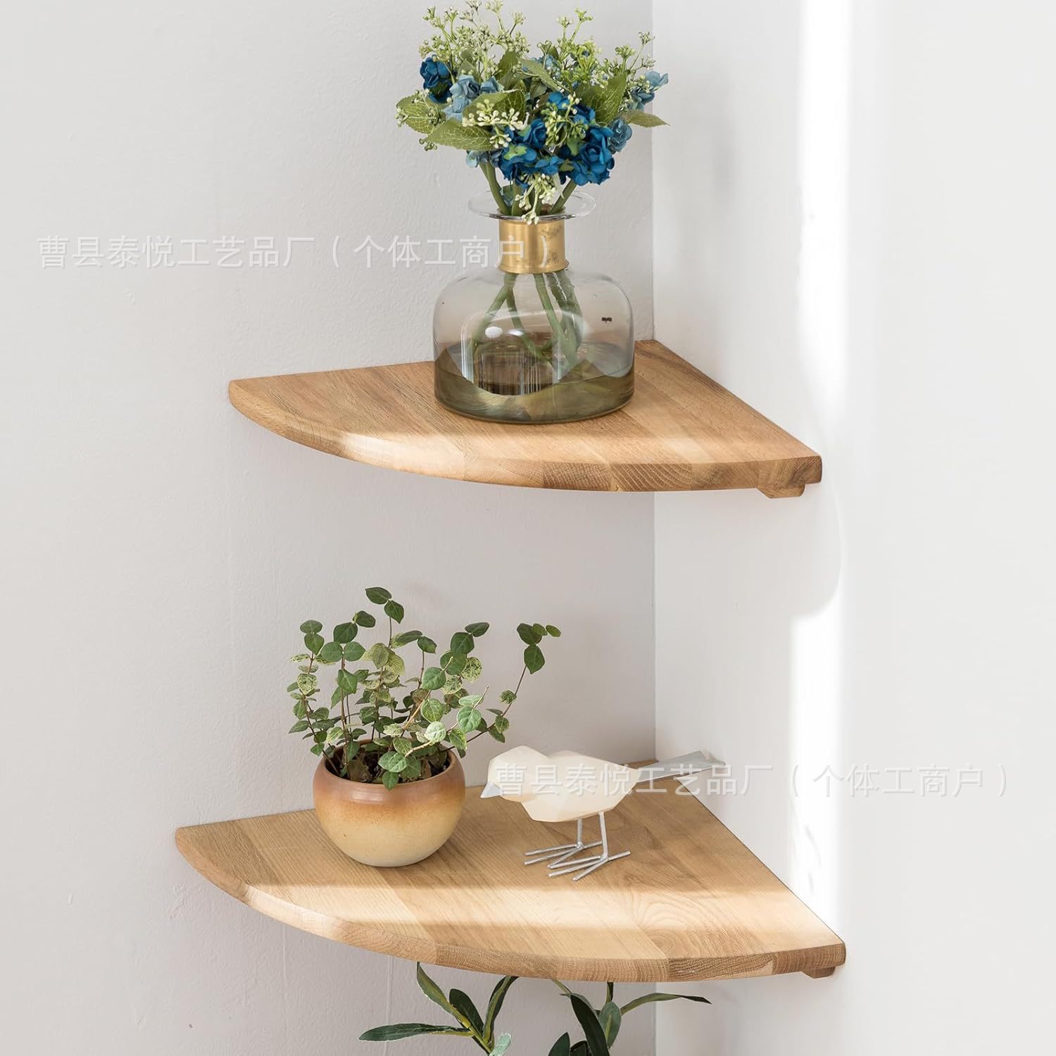 無垢材扇形棚板、ゴム材コーナー壁掛け棚、木製壁掛け棚、装飾棚