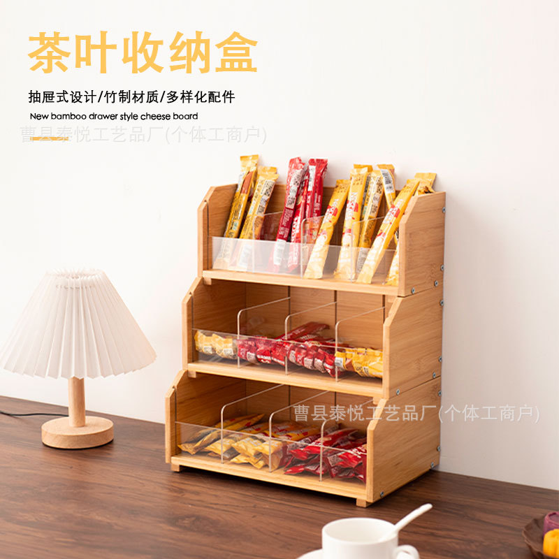 竹製ティーバッグ収納ボックス三段コーヒーバッグ置物棚コーヒースタンドお茶の間カプセルコーヒー収納ボックス
