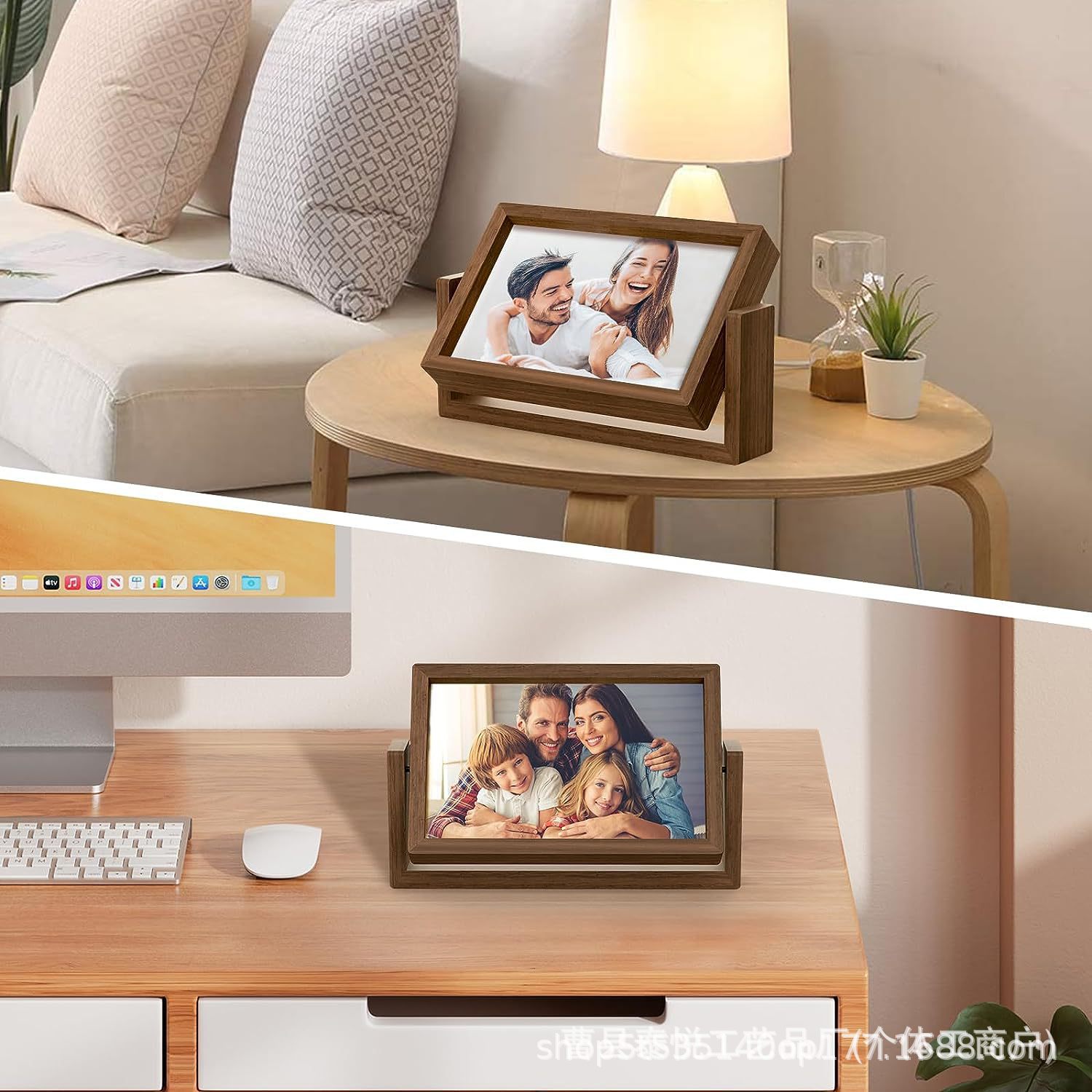 新しい木の回転のフォトフレームの家の実木のフォトフレームの置物の家庭用記念フォトフレームの両面のデスクトップの回転のフォトフレーム