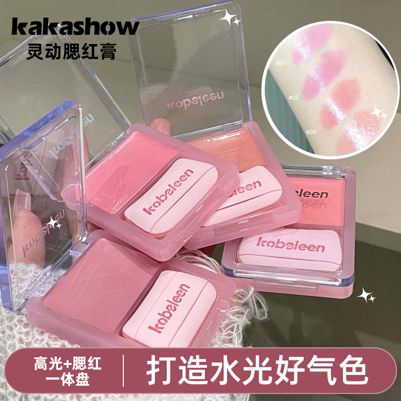 Kakashow水光頬紅ペーストのダブルハイライト顔は自然に立体的で透明な化粧品を持っています。