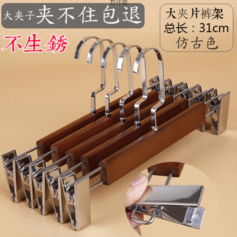 実木ズボン架クリップ金クリップズボン掛け家庭用スカート収納干し滑り止め洋服店ステンレスズボンクリップ