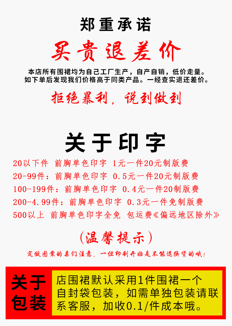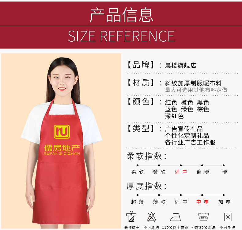エプロン印字卸売り購買商品広告ロゴ宣伝開業オックスフォード桃皮パイル制服尼プレゼントが腰を囲んでいる