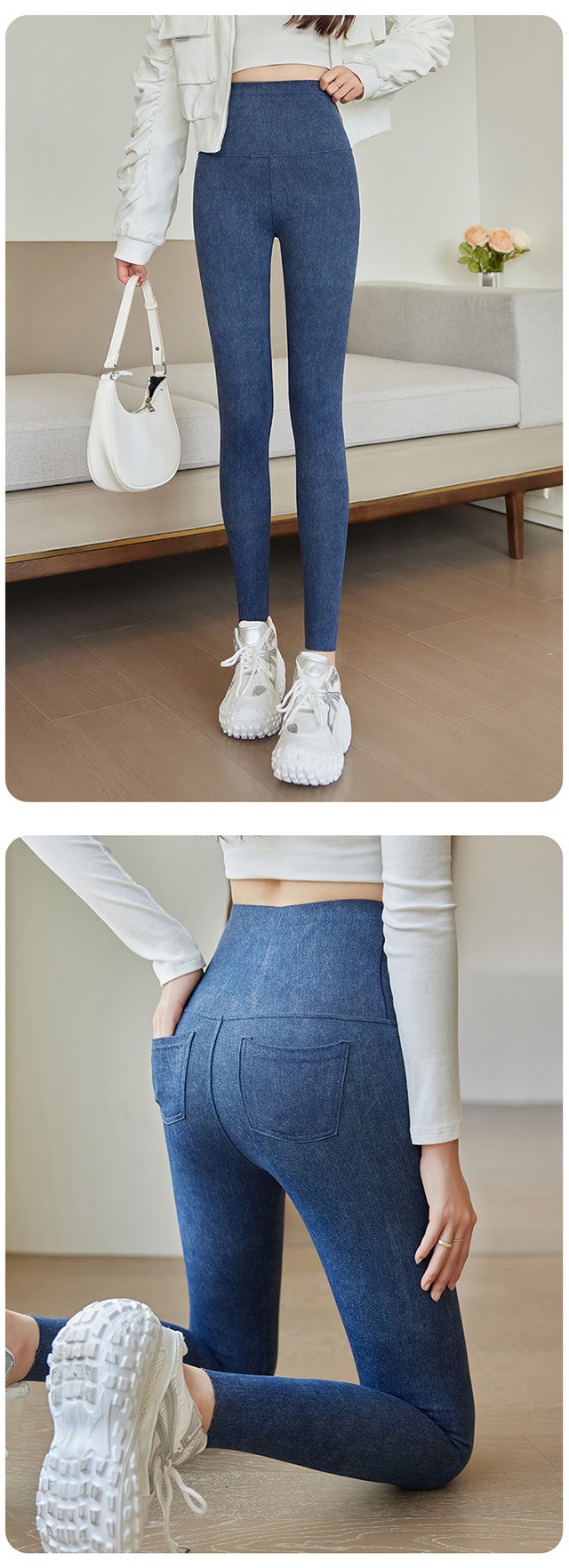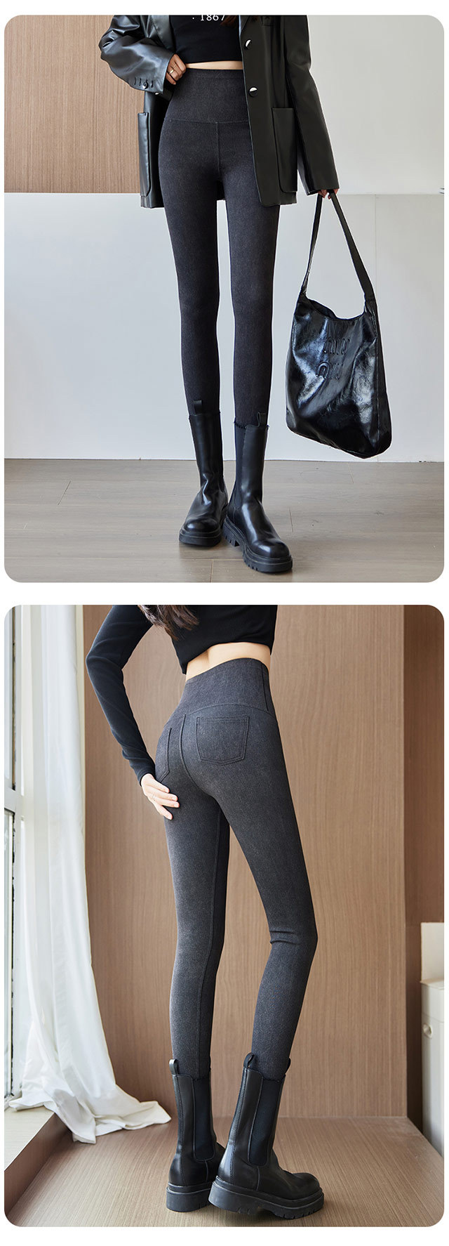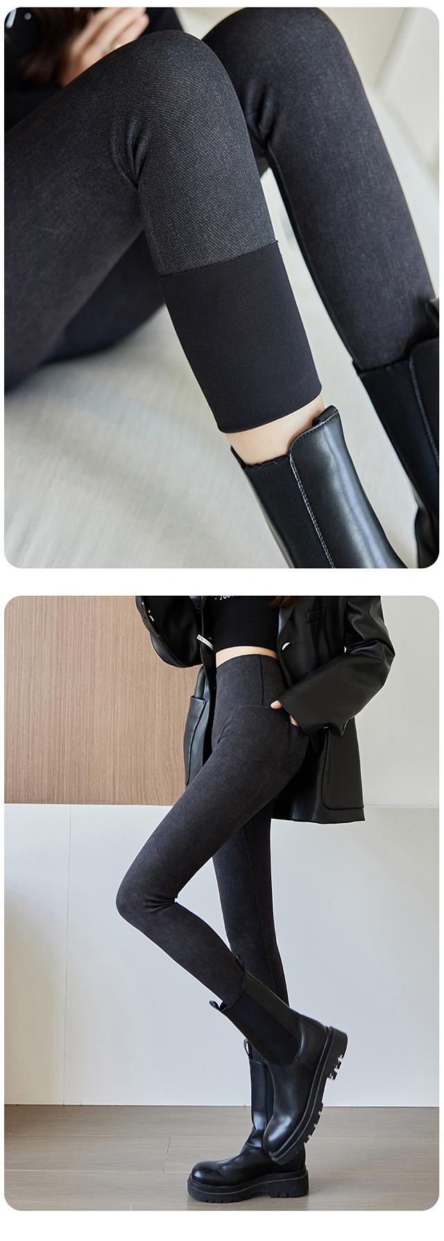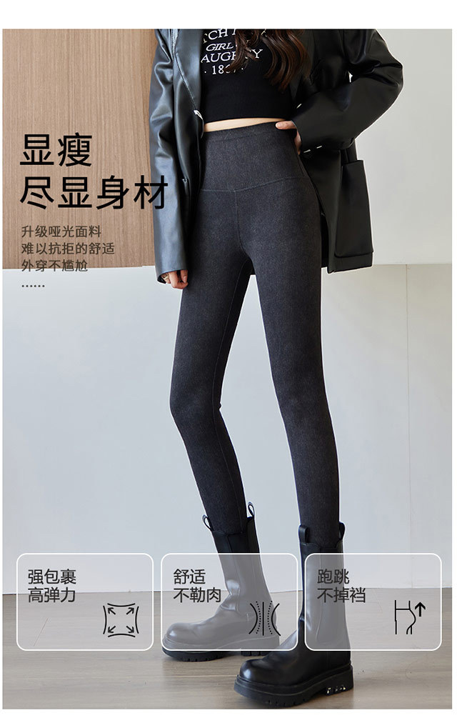 24最高の腰に気まずい線がなくて、足を踏むサメの女性は冬にベルベットを着て、お尻を厚くして痩せているバービーのズボンを着ています