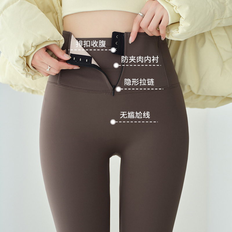 秋冬新品屁帘九分裤高腰收腹链排扣收腹显瘦外穿加绒加厚瑜伽打底