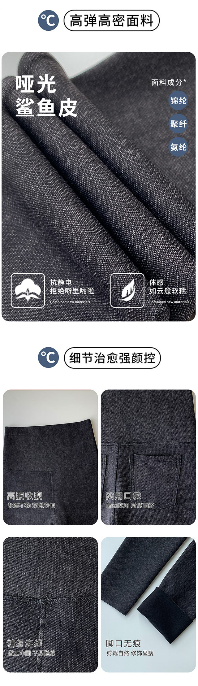 2238足を踏むサメの皮の底のズボンの女性は春と秋の高い腰を着て腹を収めて体を支えます。