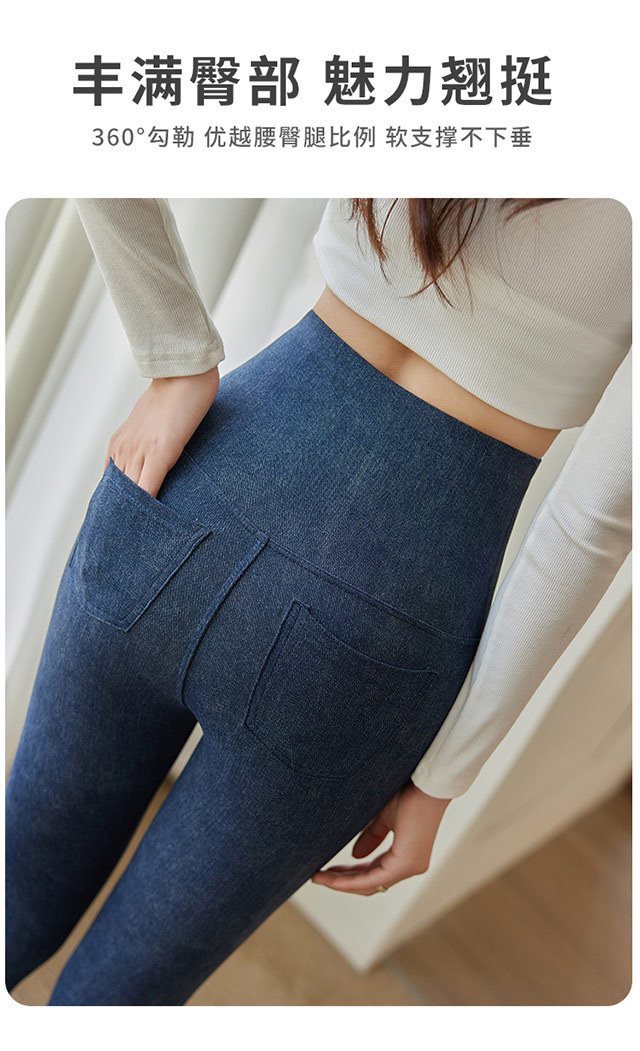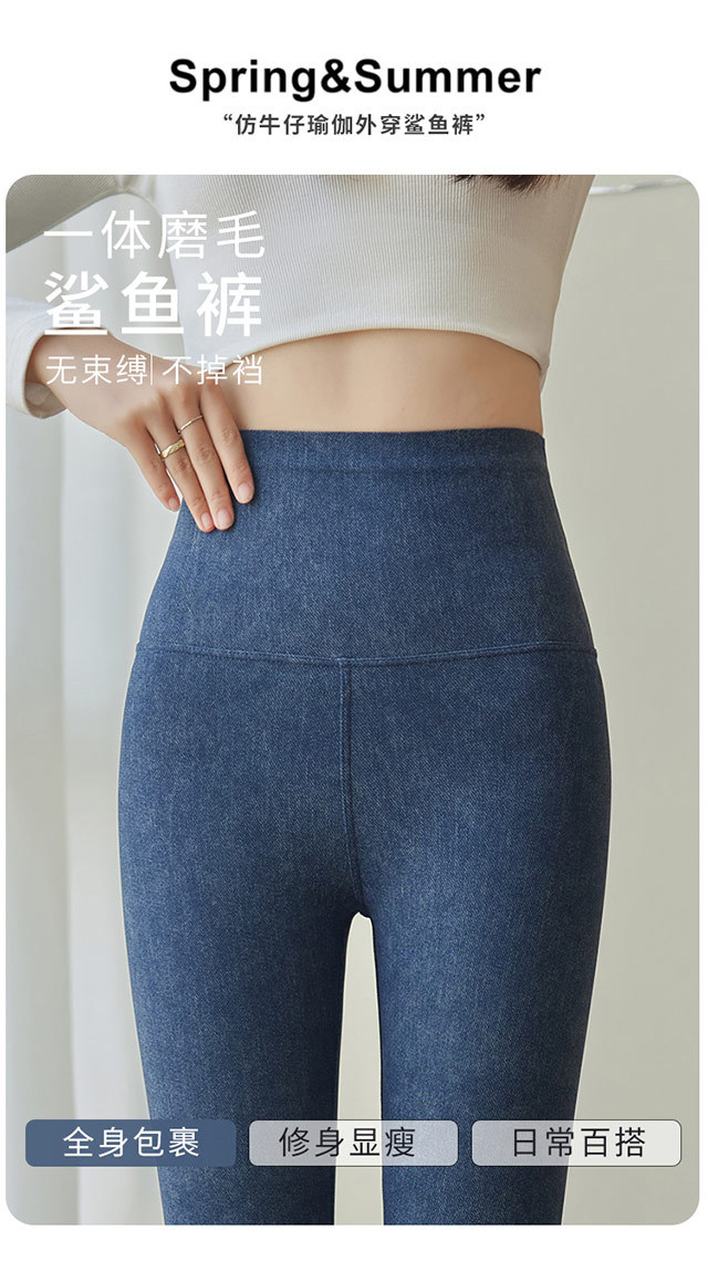 2357お尻を持つデニムのサメのレギンスの女性は秋冬の高腰のヨガのバービーのズボンを着ています。