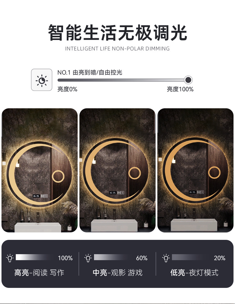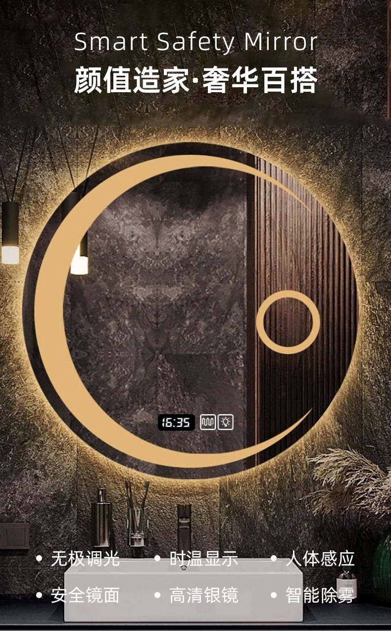 圆形智能镜子挂墙式卫生间浴室镜化妆带灯led防雾触摸屏发光壁挂