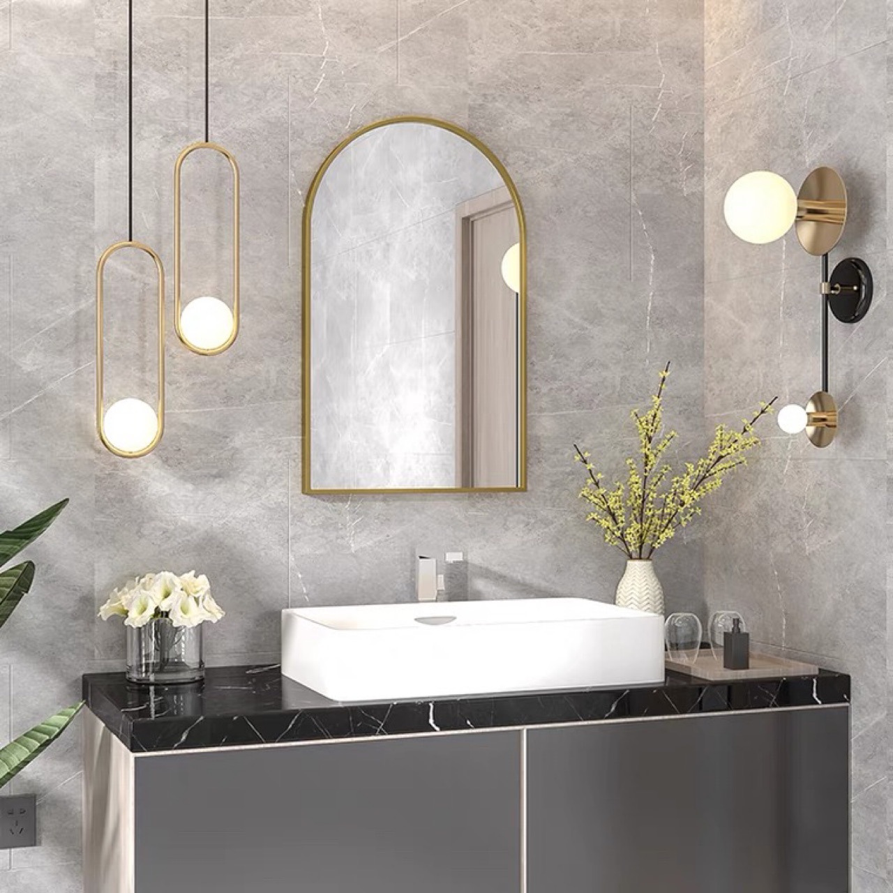 軽い豪華な浴室の鏡北欧のトイレの鏡の壁掛けのアイデアのトイレの半楕円形の民宿のデザイナーの芸術