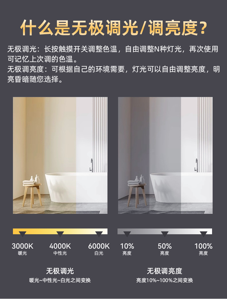 ノータッチワイヤーコントロール(白色光),ノータッチワイヤーコントロール(暖かい光),ワンタッチ(白色光),ワンタッチ(暖かい光),ワンタッチ(3色ライト),デュアルタッチ(白色光+曇り止め),デュアルタッチ(暖かい光+曇り止め),デュアルタッチ(3色ライト+曇り止め),デュアルタッチ(白色光+曇り止め+時間温度表示),デュアルタッチ(暖色光+曇り止め+時間温度表示),デュアルタッチ(3色ライト+曇り止め+時間・温度表示),Bluetooth 6 個 (白色光 + 曇り止め + カレンダー + 時間と温度表示 + Bluetooth),Bluetooth 6 個 (暖かい光 + 曇り止め + カレンダー + 時間と温度の表示 + Bluetooth),Bluetooth 6 個 (3 色ライト + 曇り止め + カレンダー + 時間と温度表示 + Bluetooth),ライトなし