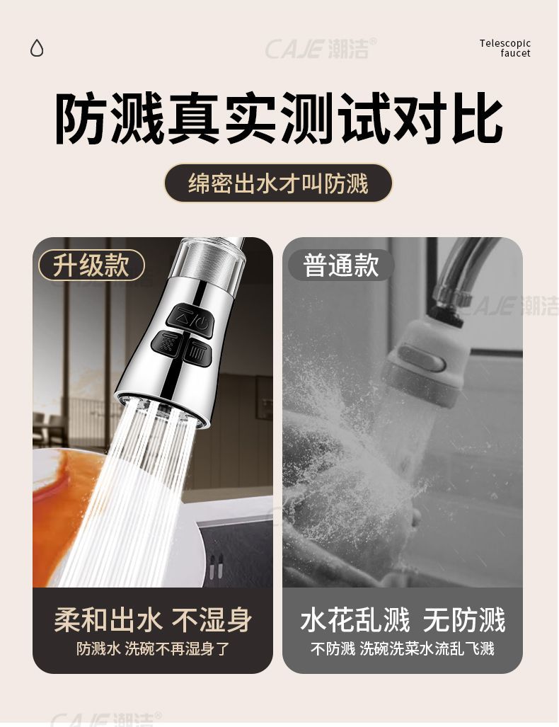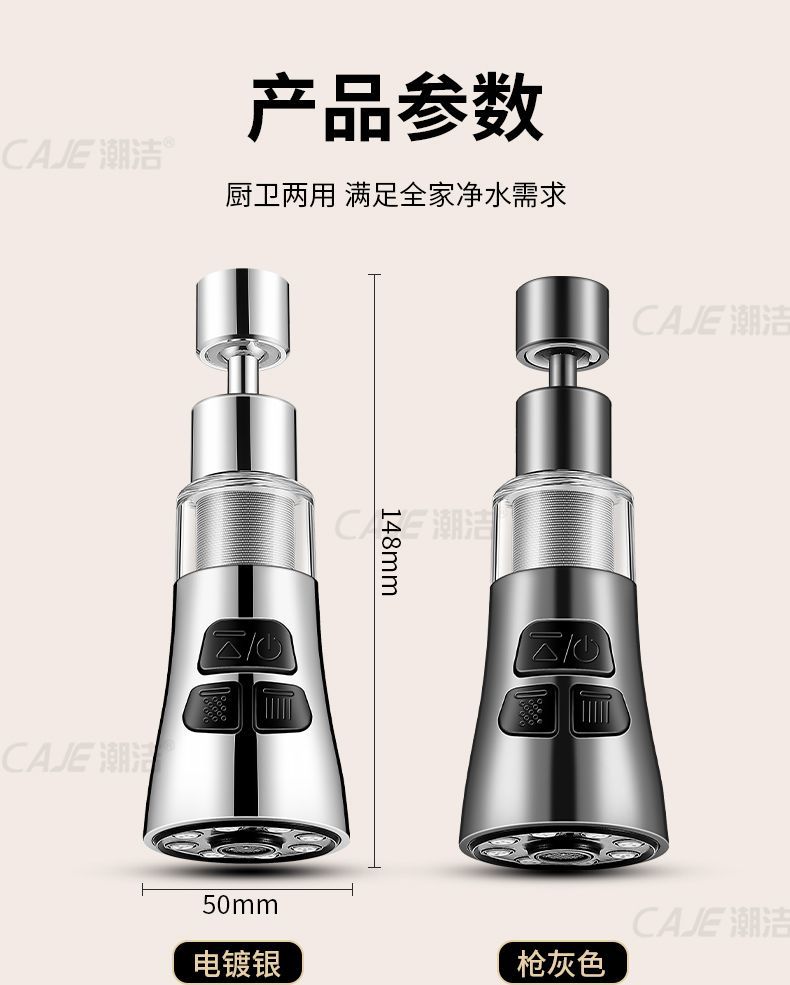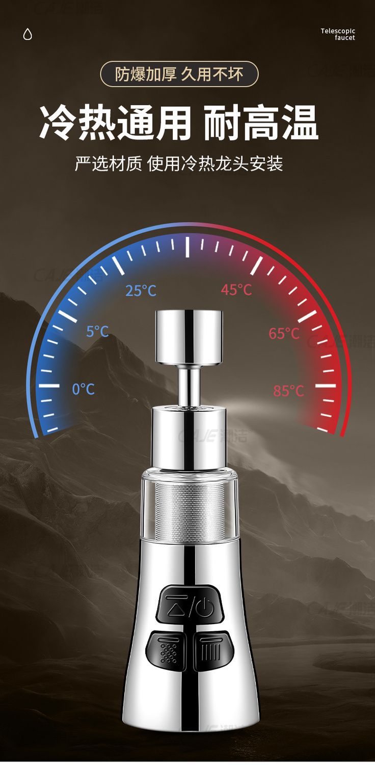 ロボットアームユニバーサル蛇口は2速回転可能、エアレーター延長水栓延長ジョイント、飛沫防止加工品