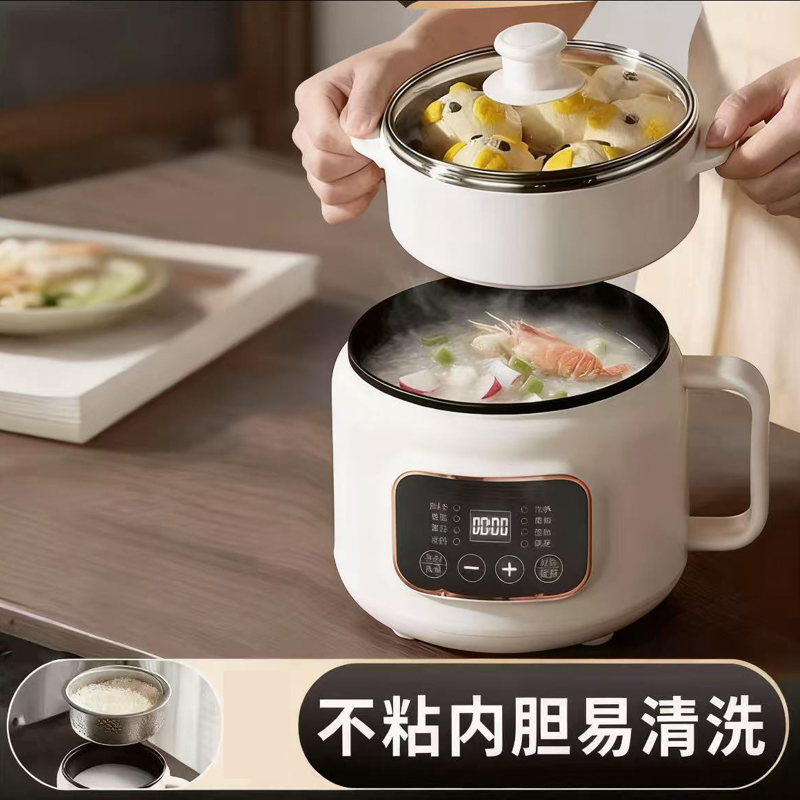 现代多功能电煮锅家用迷你电饭煲宿舍单人可预约电火锅不粘蒸煮锅