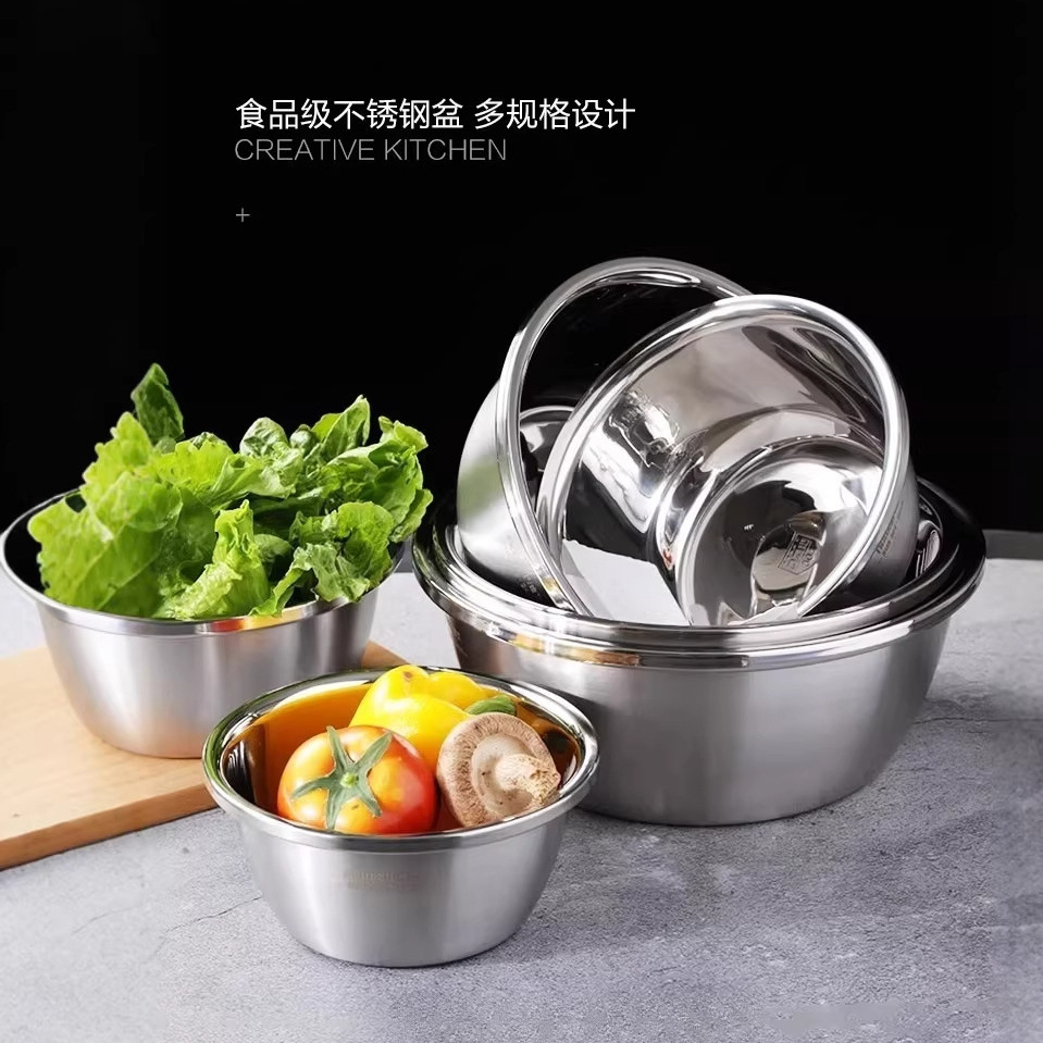 304不锈钢盆家用加厚汤盆备菜盆厨房无磁调料缸沥水盆烘焙和面盆