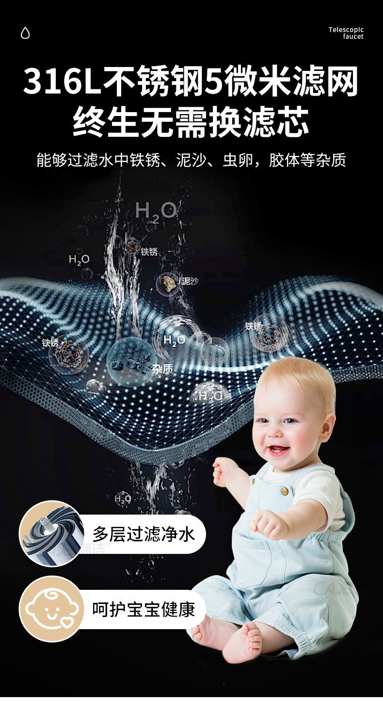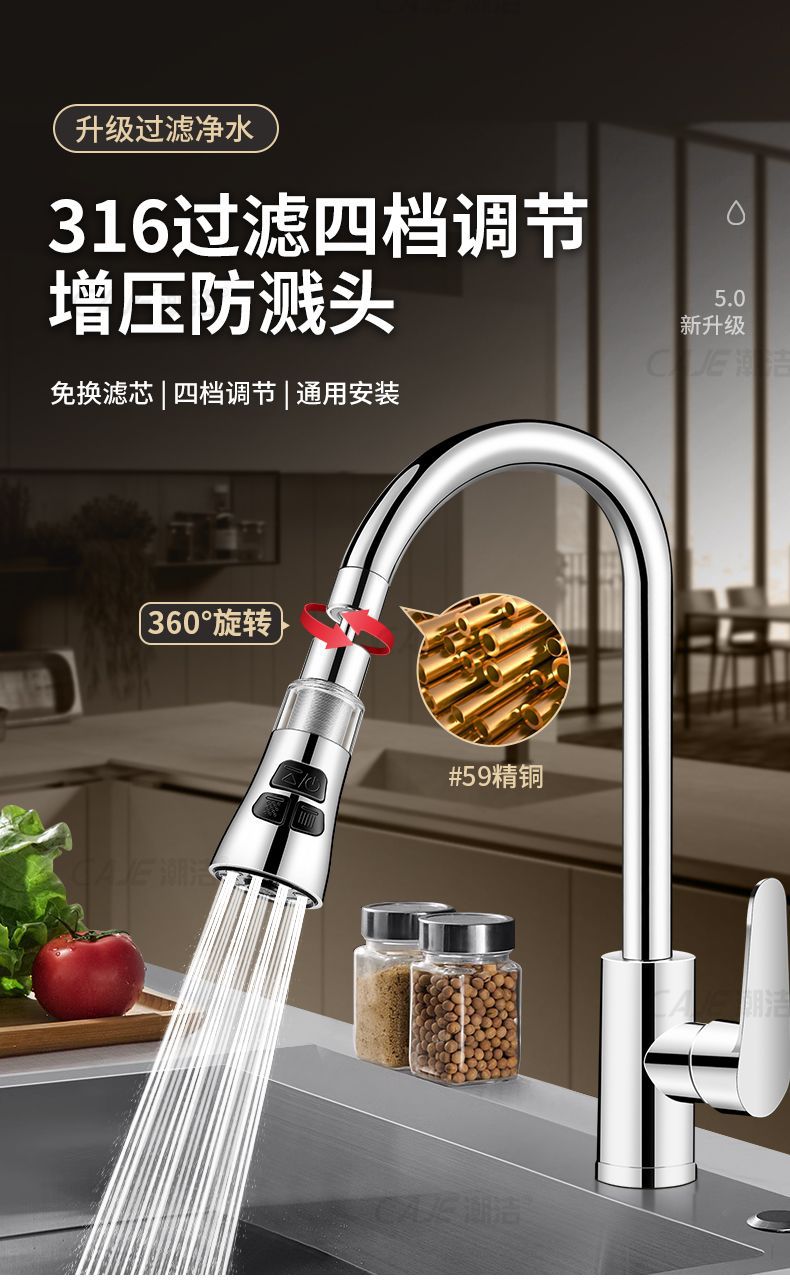 蛇口フィルター316フィルター芯水道清浄機厨房自在回転延長スプラッシュ防止浄水口