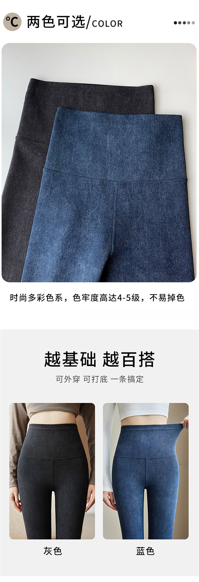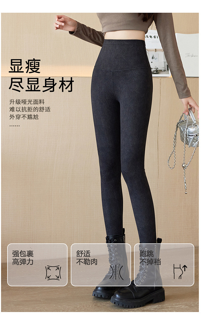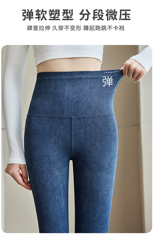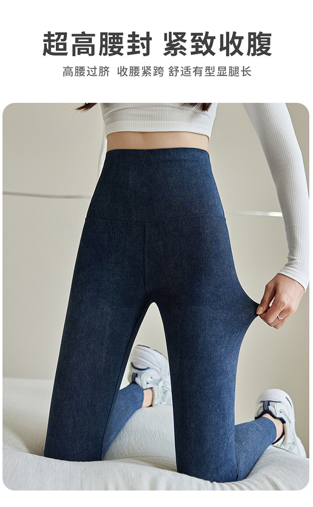 仿牛仔打底裤女2025新款秋冬外穿高腰收腹小个子显瘦加绒瑜伽长裤