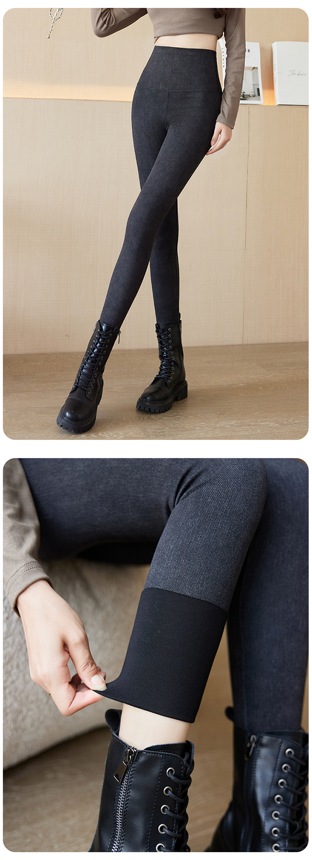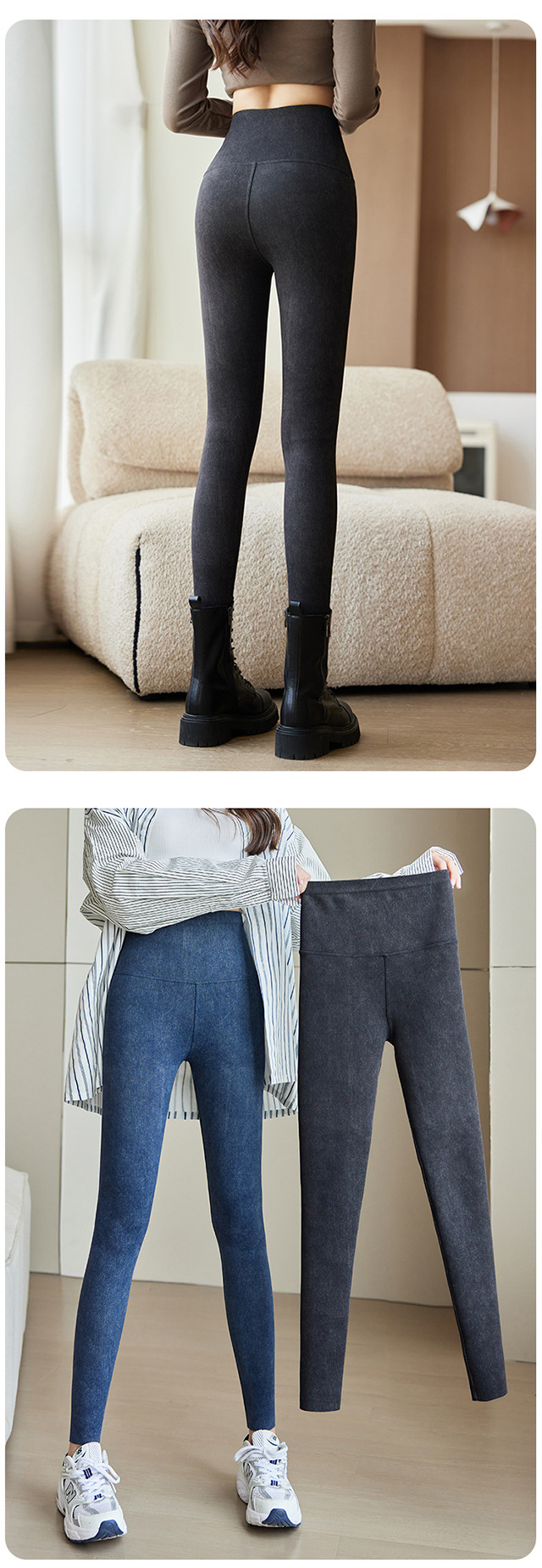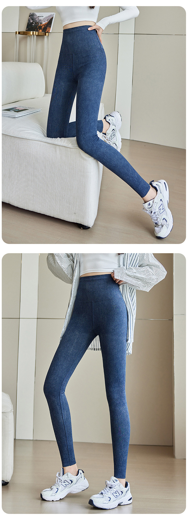 仿牛仔打底裤女2025新款秋冬外穿高腰收腹小个子显瘦加绒瑜伽长裤