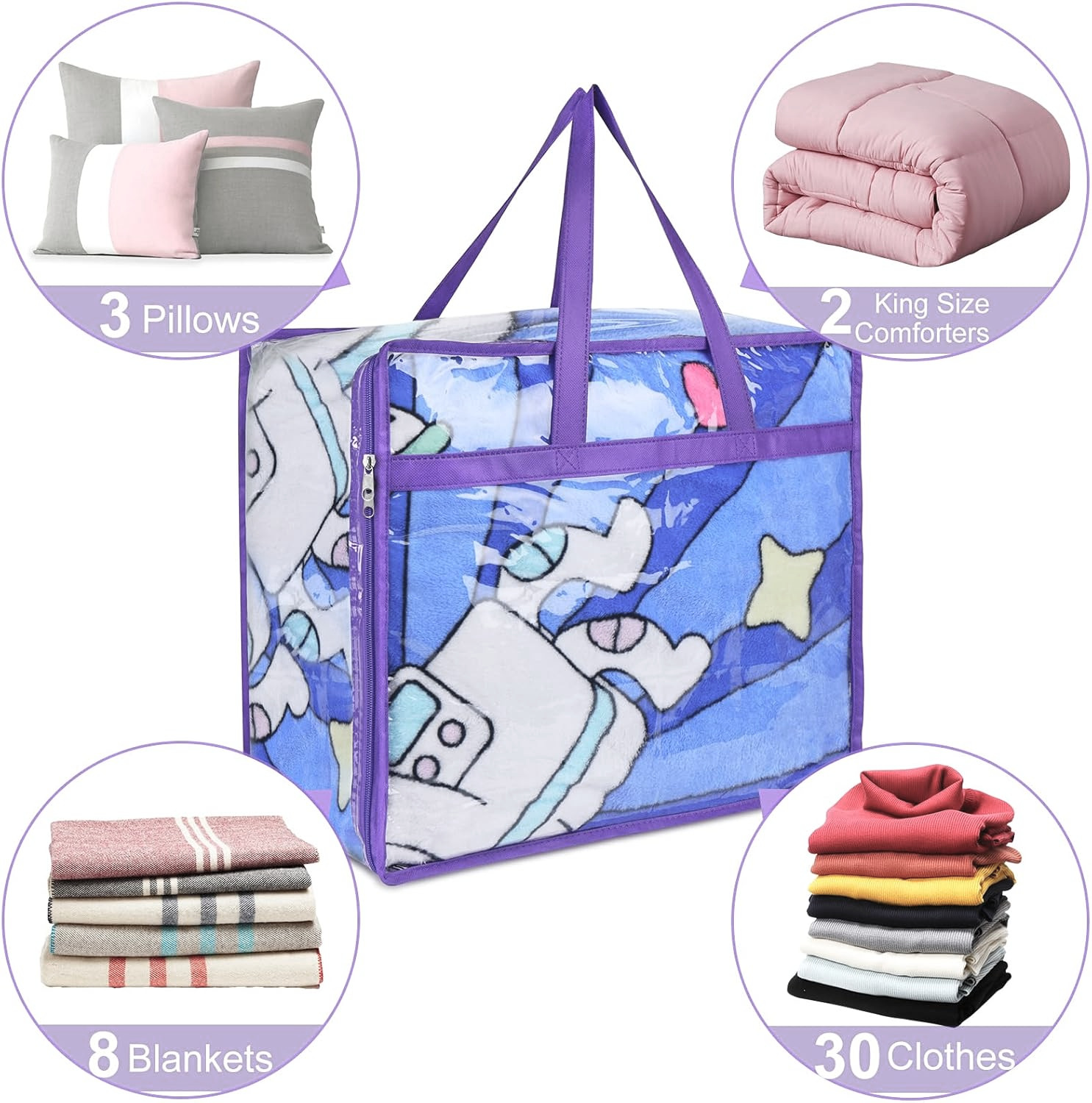 PVC手提げ透明衣類収納袋ファスナー付き毛布玩具ダウンジャケット布団たんす整理収納袋