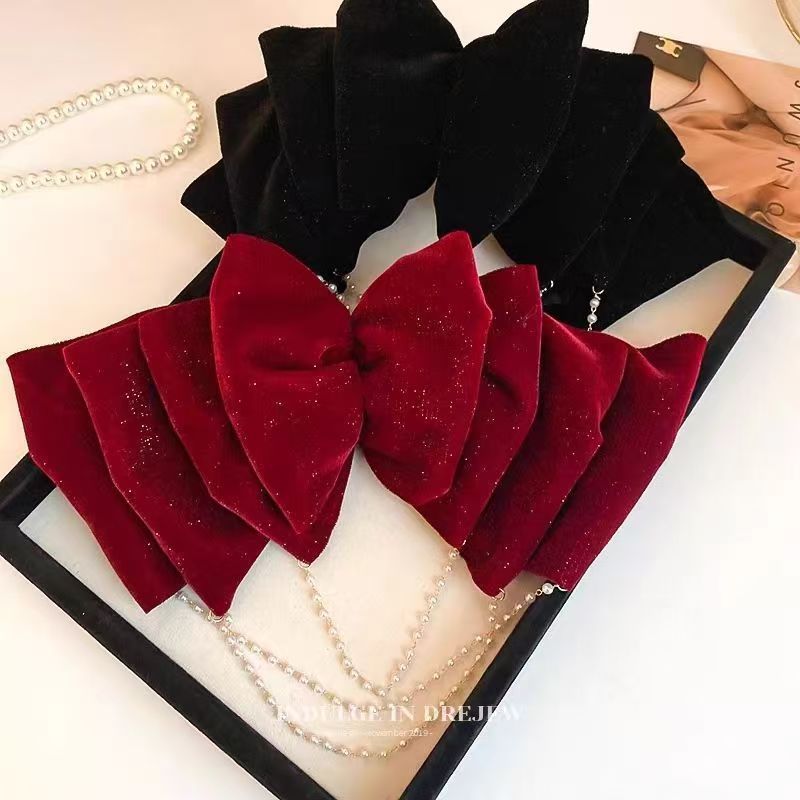フランスの軽い豪華な多層のベルベットの蝶結びの真珠のスプリングは重工業の新婦の赤い敬酒服の質感のヘアピンを挟みます。