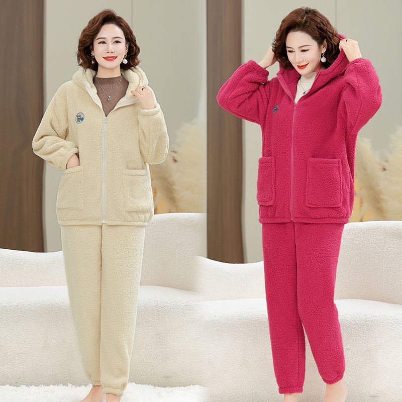 女性の秋冬モデルは家庭服のセットを着て、お母さんのパジャマのカジュアルな雰囲気を厚くします。