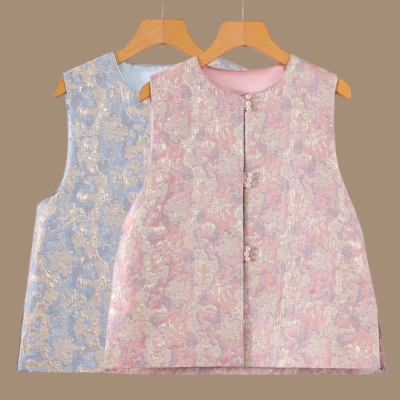 中国式国風盤バックル馬甲ジャカード刺繍ベスト2025袖なし新作春秋上着レトロカン肩女装