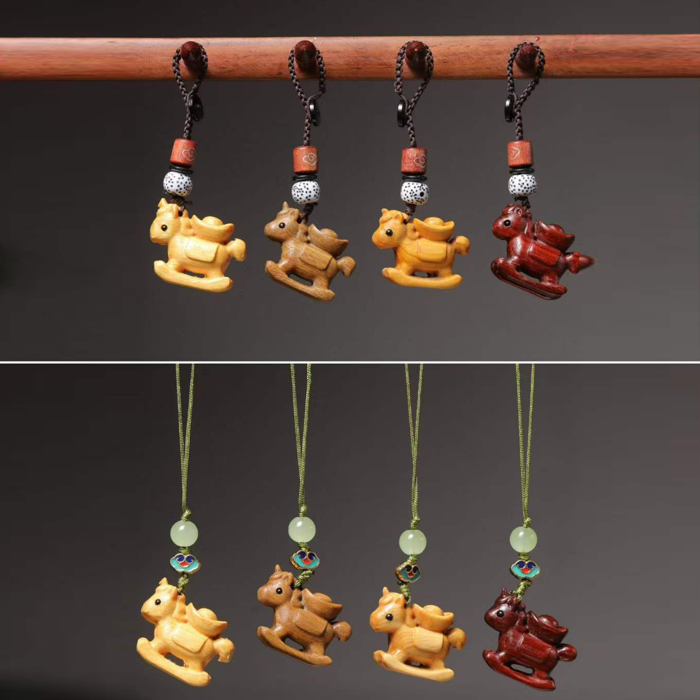 檀木本命年生肖马挂件独角兽木马马上有钱手机链钥匙扣伴手礼挂饰