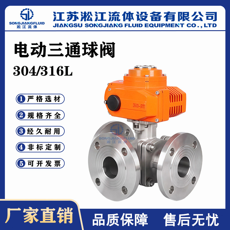 電動三方ボールバルブ Q945F-16P ステンレス鋼 304/316L 工業用パイプライン L/T タイプ分流逆転バルブ